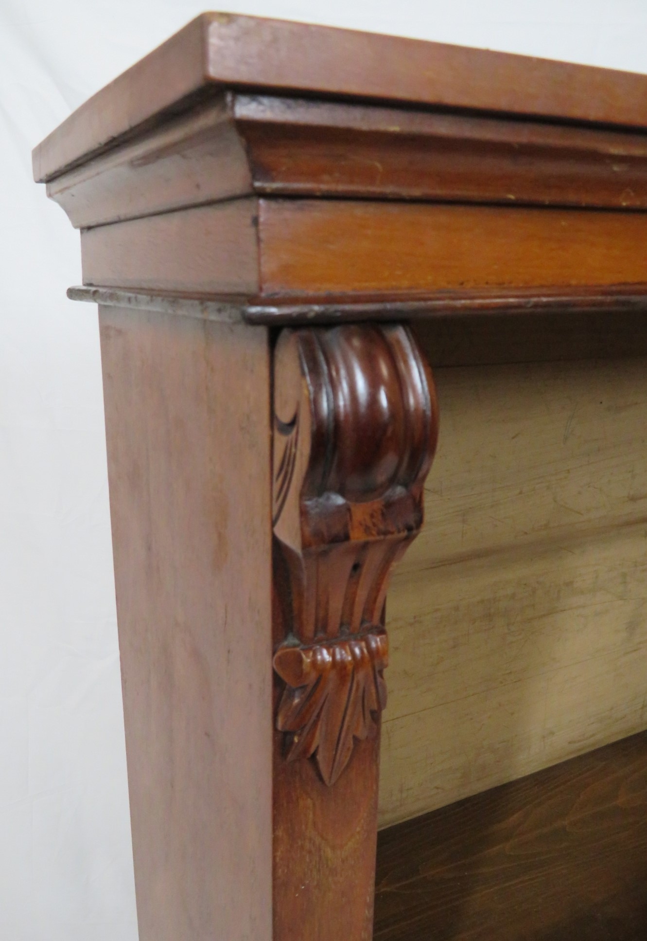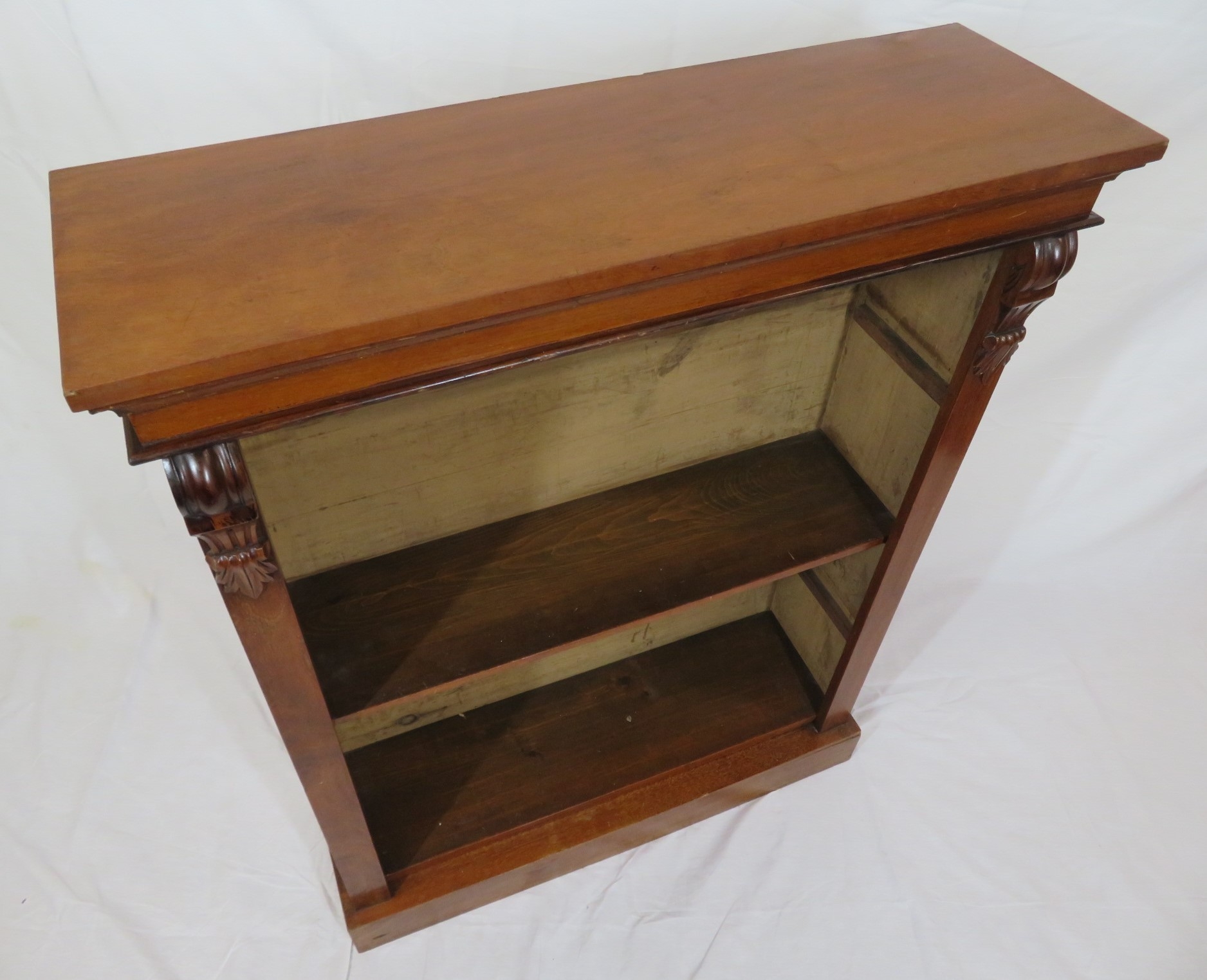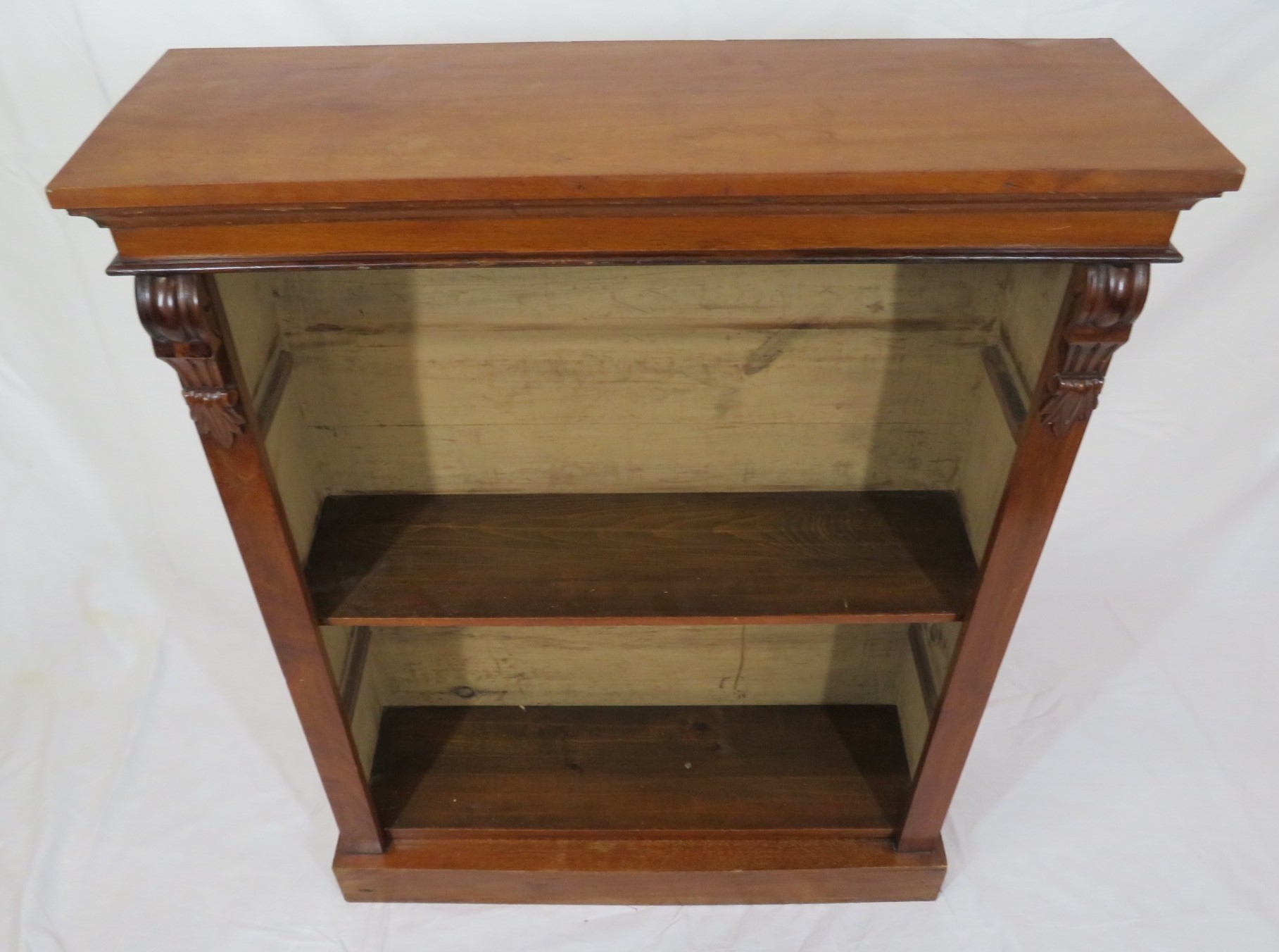 Edwardian style open bookcase with adjustable shelving, on plinth