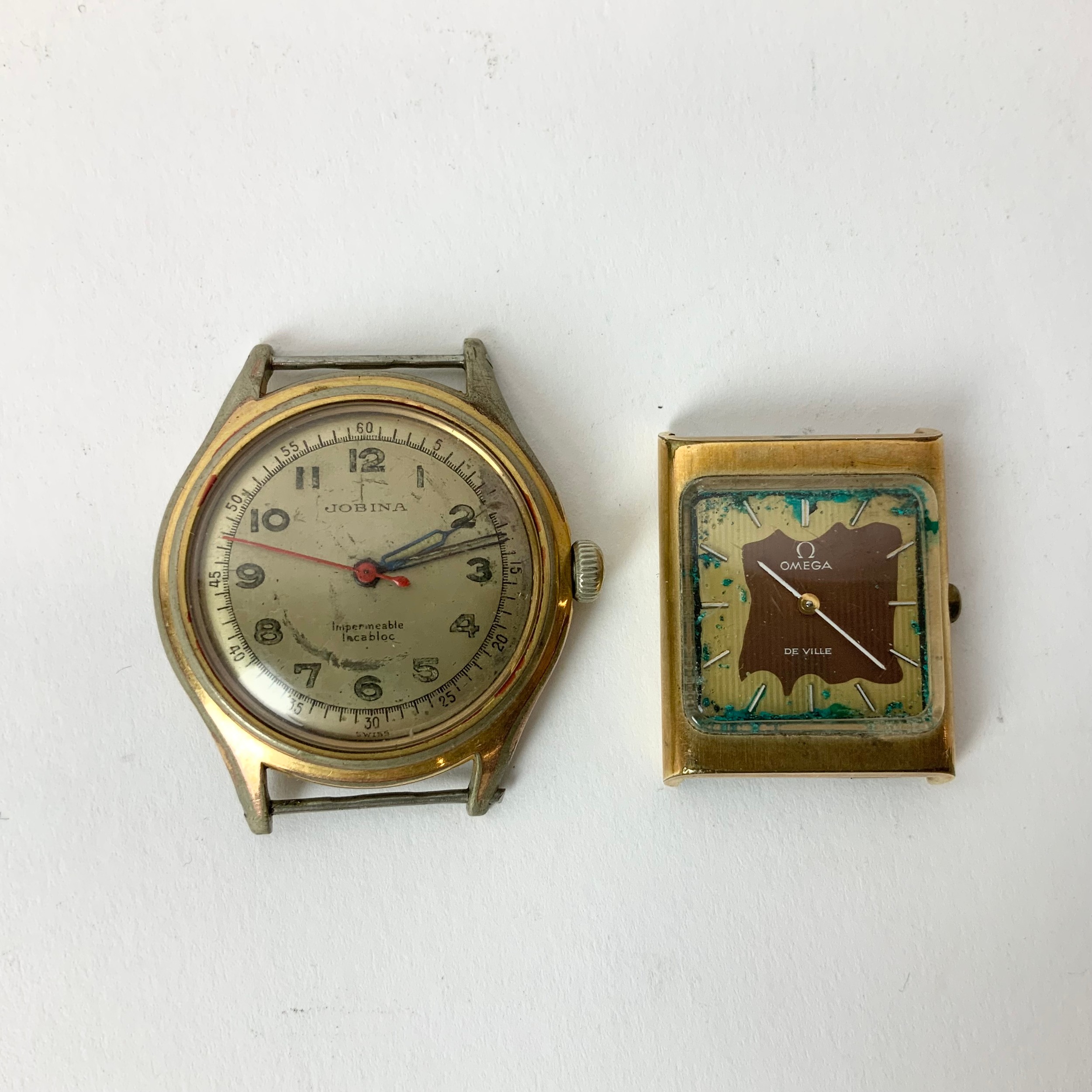 Ladies' Omega De Ville watch face; along with a vintage Jobina Impermeable Incabloc watch face.
