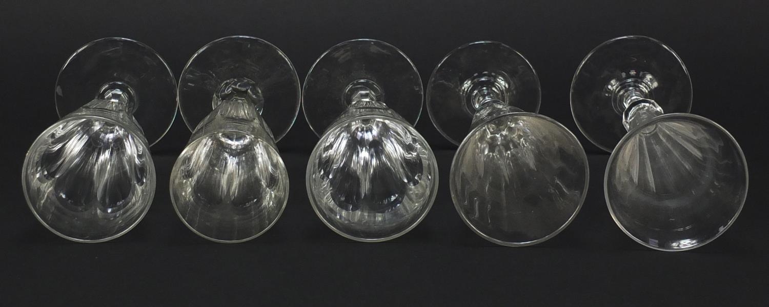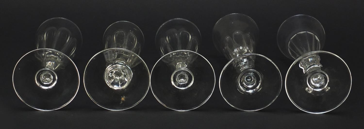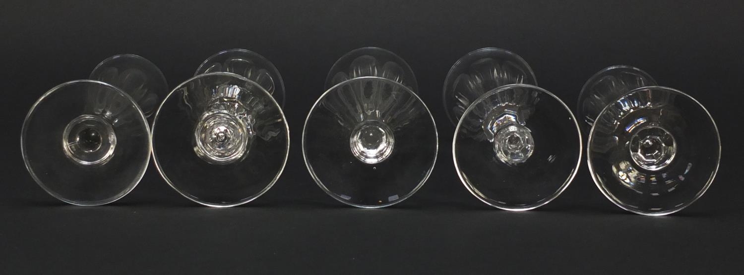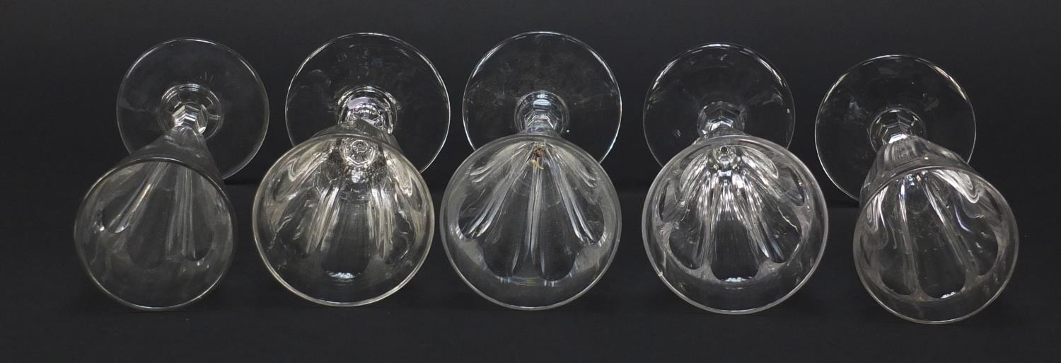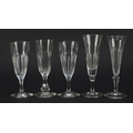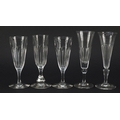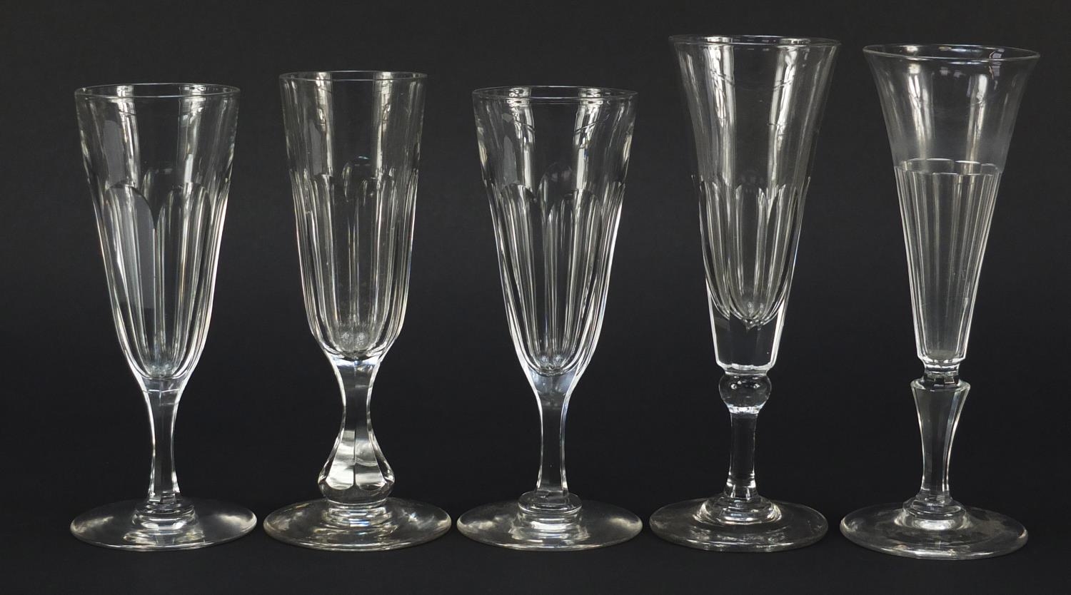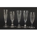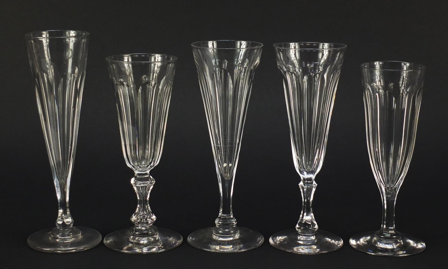 Ten 18th/19th century faceted Champagne flutes, the largest 18.5cm high