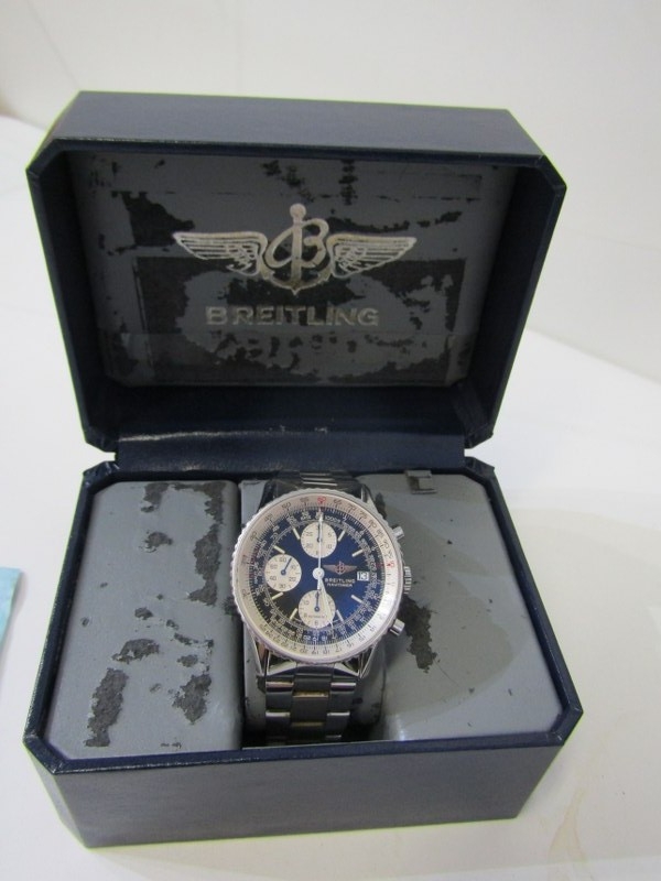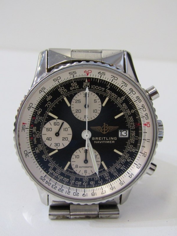 BREITLING WRIST WATCH, A Breitling stainless steel gentleman's Navitimer black dial chronograph wrist watch, double boxed