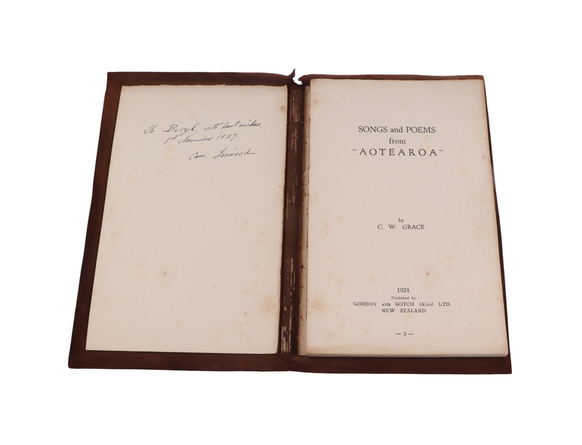Grace (CW) Songs & Poems from Aotearoa, first edition published 1924 by Gordon & Goch Ltd New Zealand, with illustrations, gilt leather.