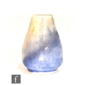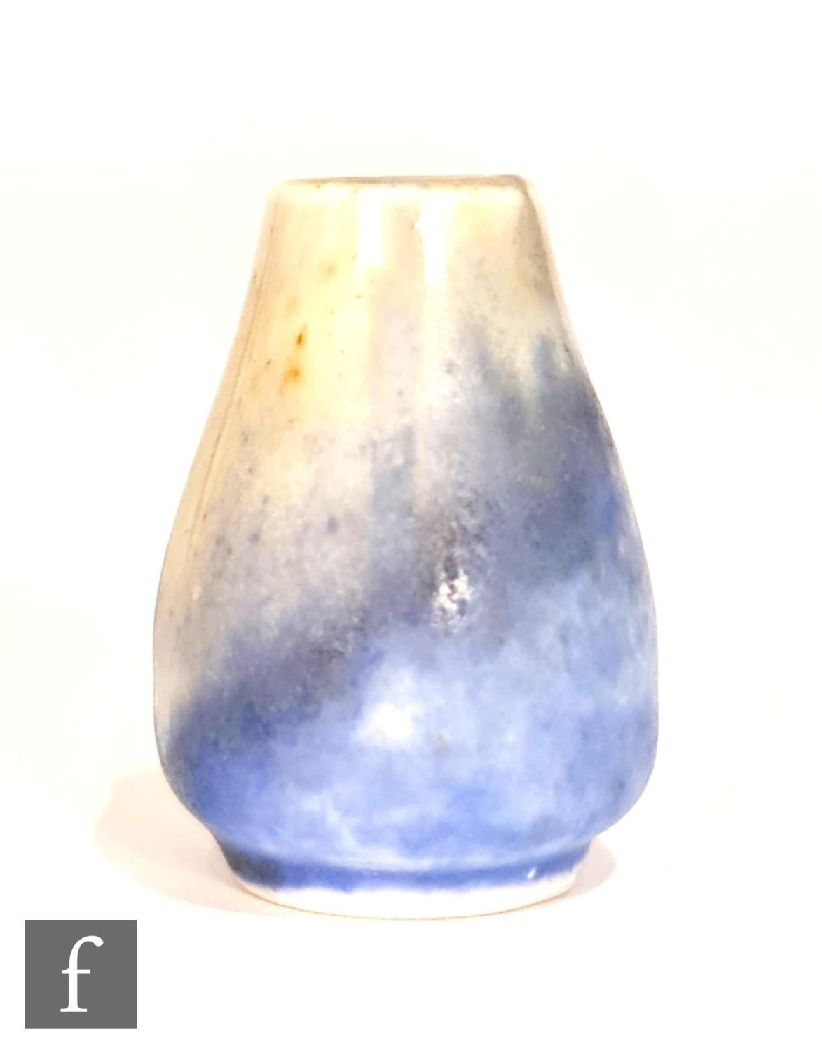 Ruskin Pottery - A miniature vase of swollen form decorated in a yellow to blue crystalline glaze, impressed mark, height 3.2cm.