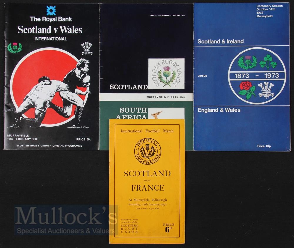 Scotland Extras Rugby Programmes 1952-1972 (4): Scotland v France 1952, v South Africa 1965, v Wales 1983 and the Four Nations SRU Centenary game 1972, Eng/Wales v Scot/Ire. VG