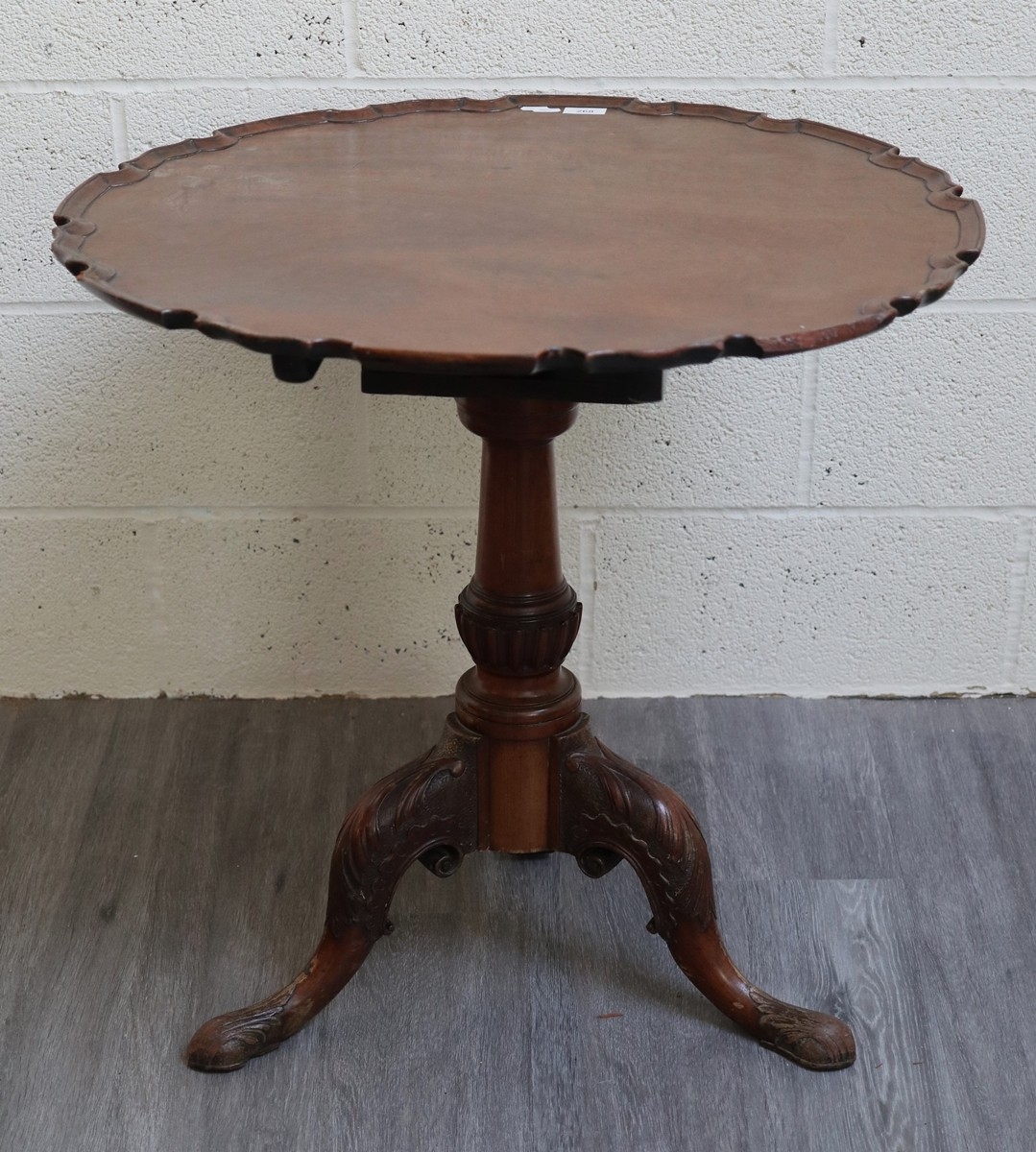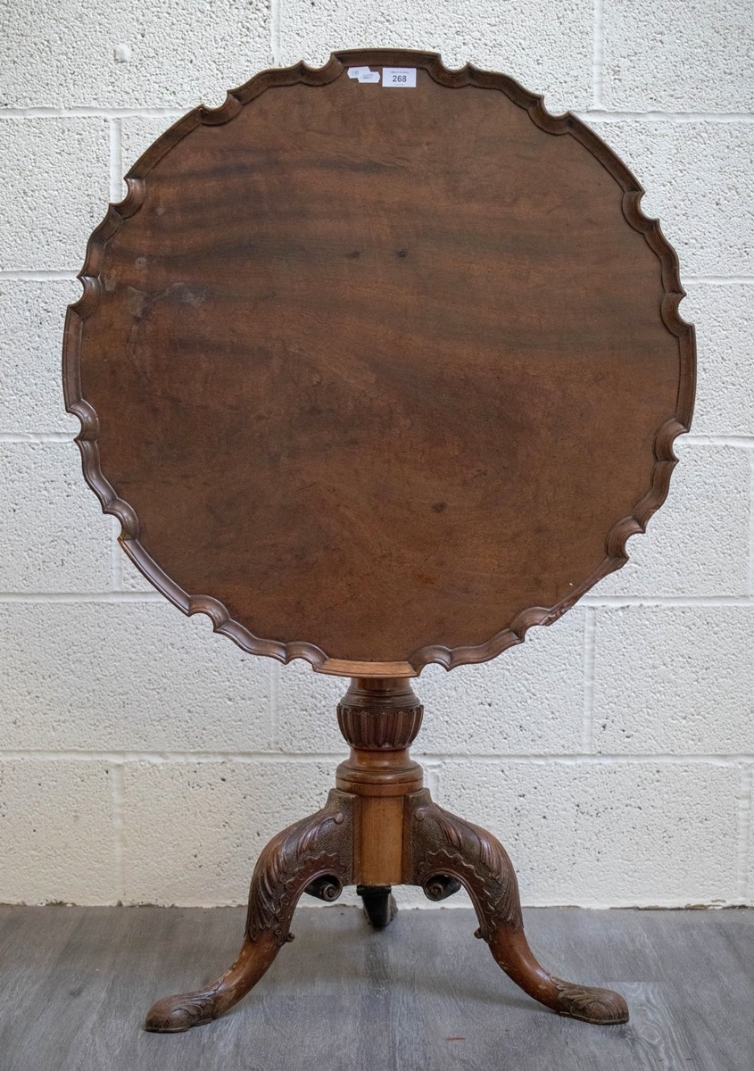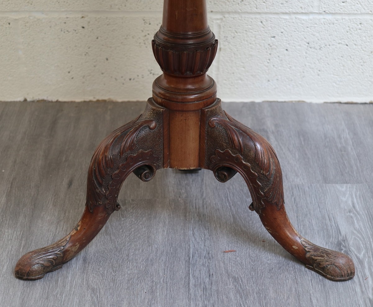 Antique mahogany carved tripod table with birdcage