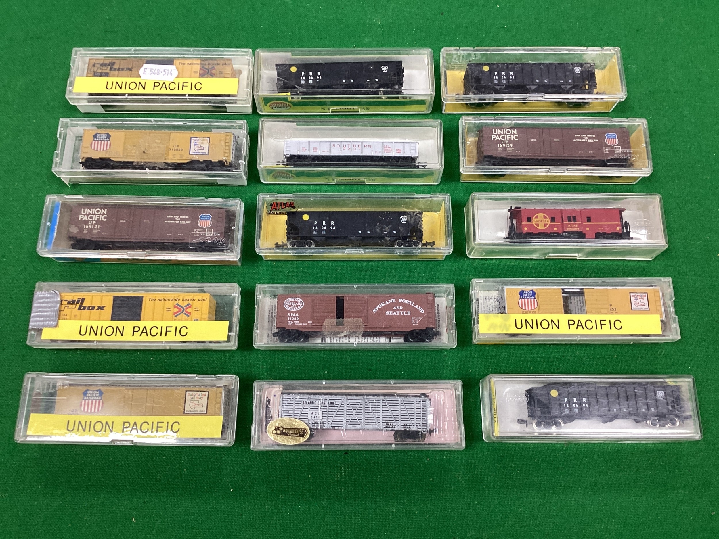 Fifteen N Gauge American Outline Rolling Stock including Vans, Wagons by Micro Trains Line, Atlas and other, boxed.