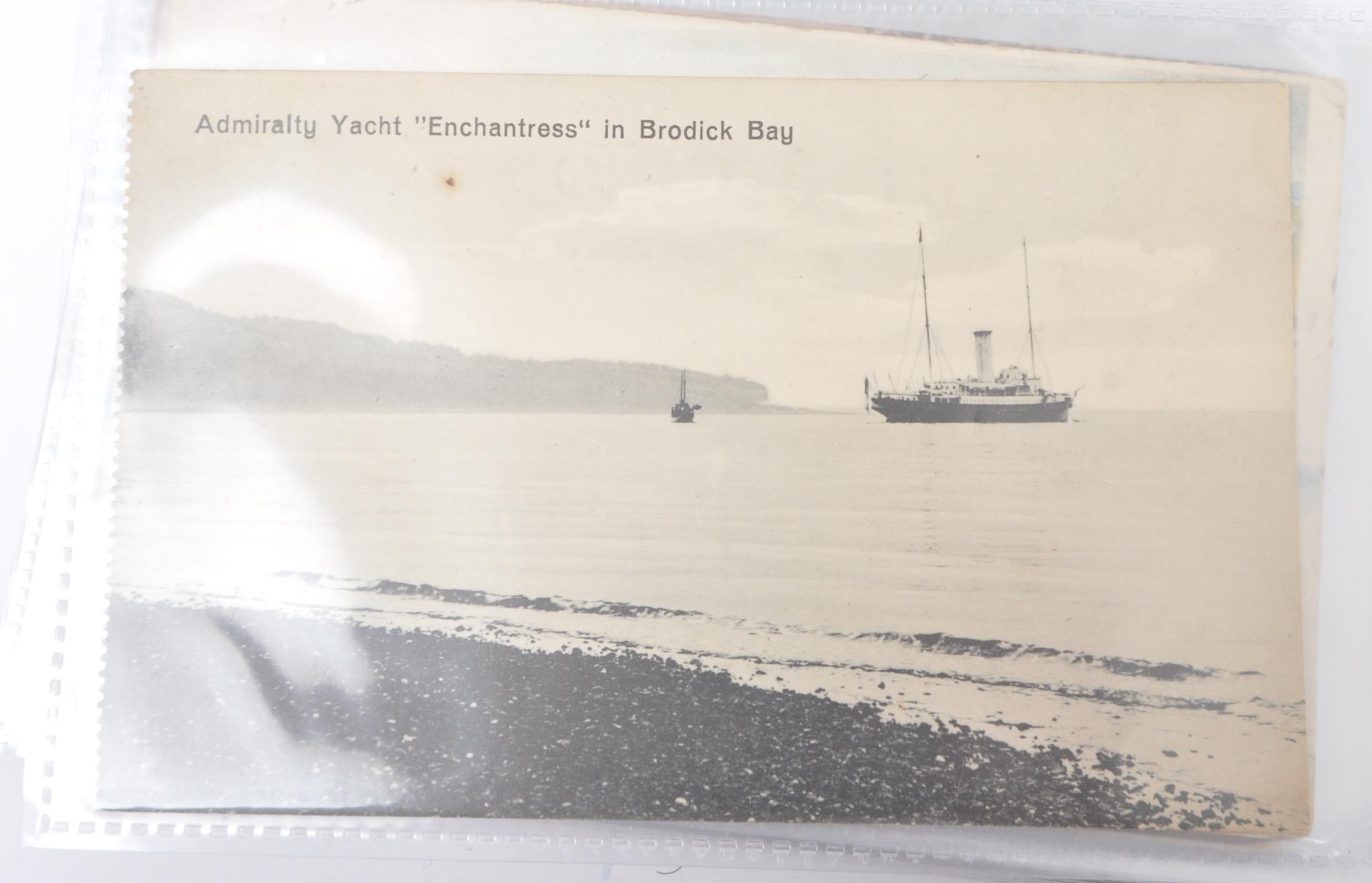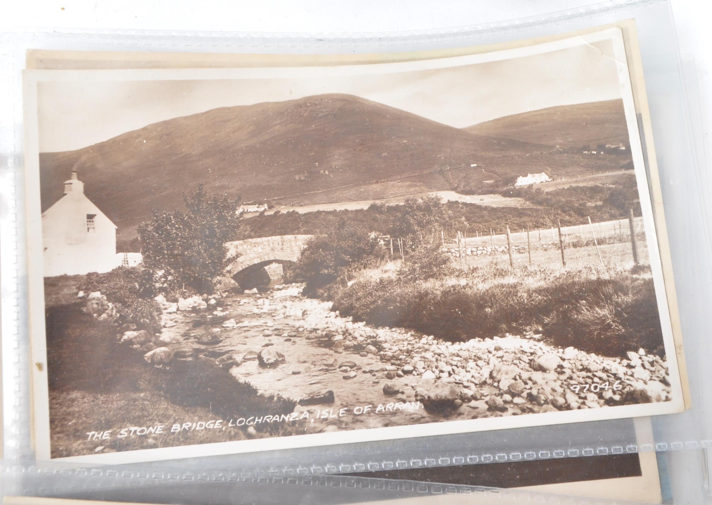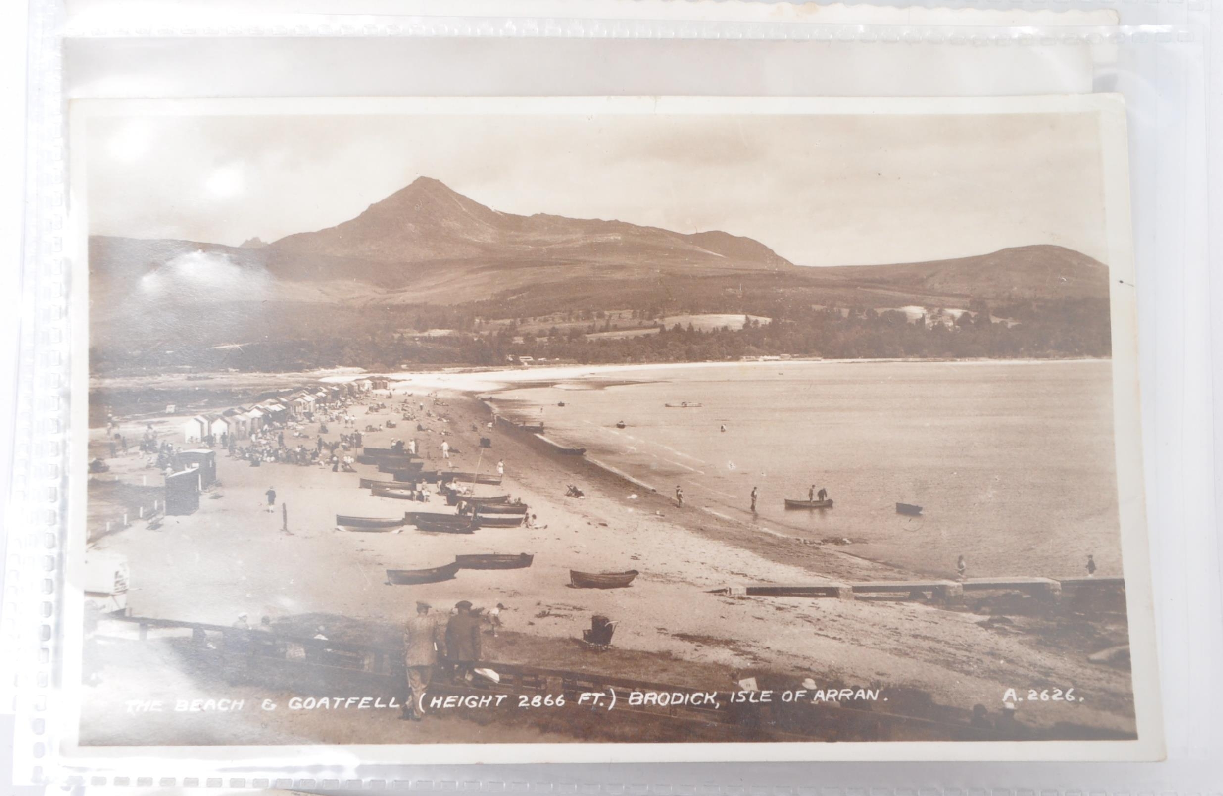 A collection of early to mid 20th century Scottish postcards. Majority landscape scenes, including places and locations, Arran, Whiting Bay, Pirnmill, Machrie, Dougrie, Corrie, Catacol, Brodick, Kildonan, Lamlash, Kings Cross, Goatfell and Glen Sannox. Present and categorised in three boxes.