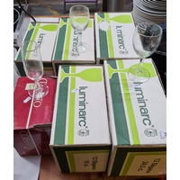 Arcoroc 68 piece black glass dinner service and serving set. All original and popular on numerous collectors websites Made in France.