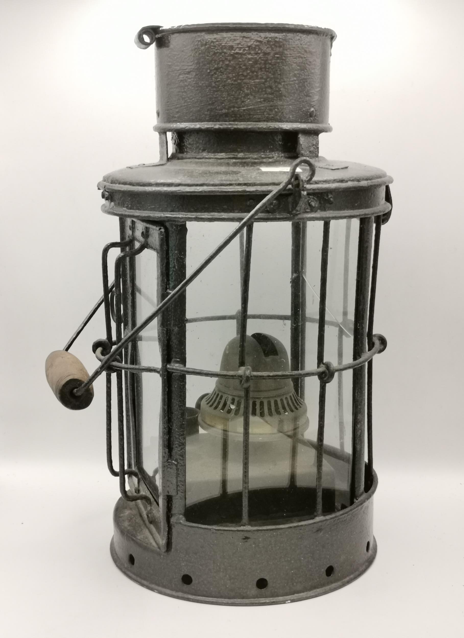 A First World War trench lantern, by Hinks Birmingham, dated 1918 to cover, with swing handle. 32cm high (excl. handle)