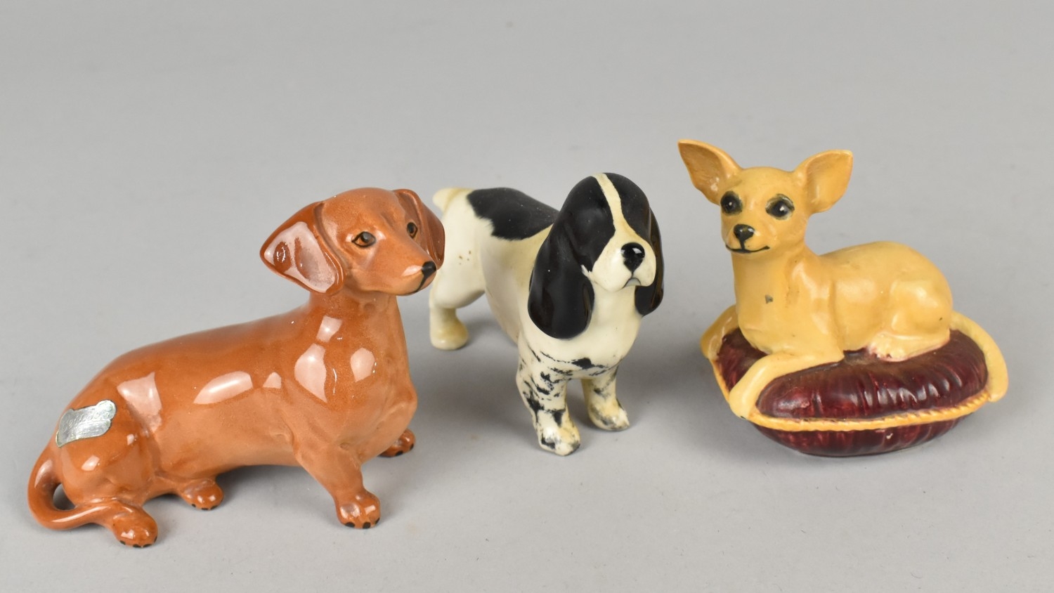 A Beswick Chihuahua No.2454, Dachshund and Cocker Spaniel (AF)