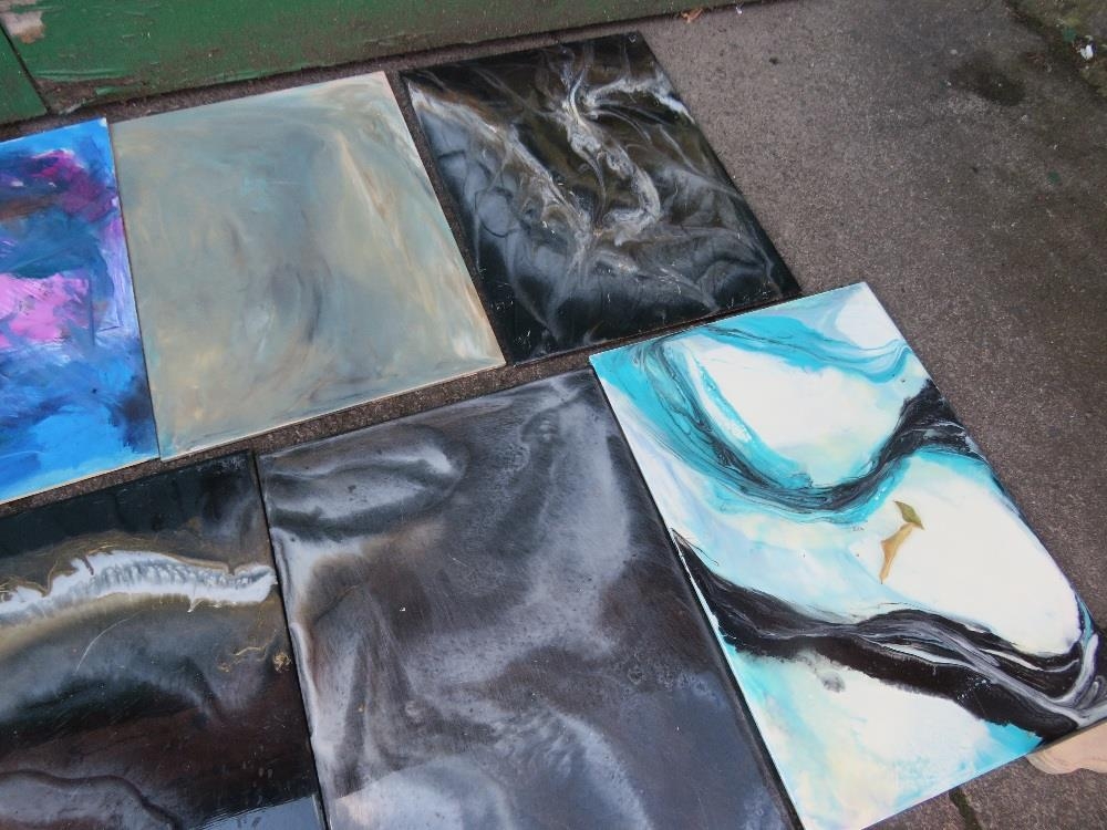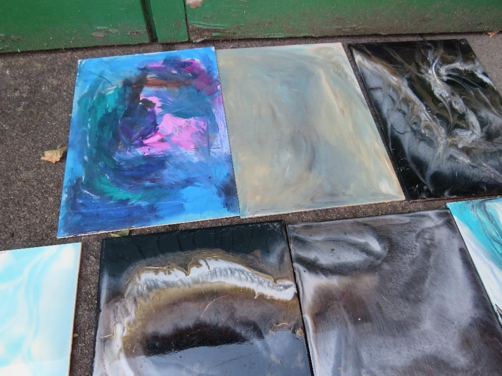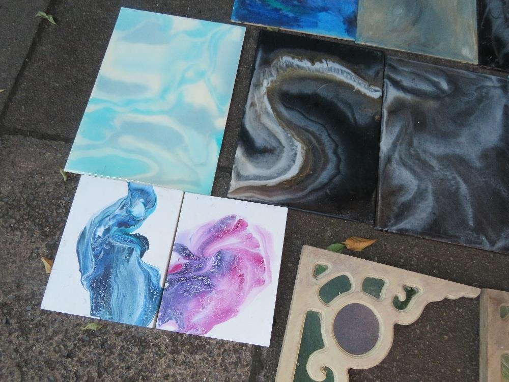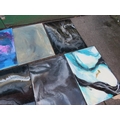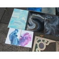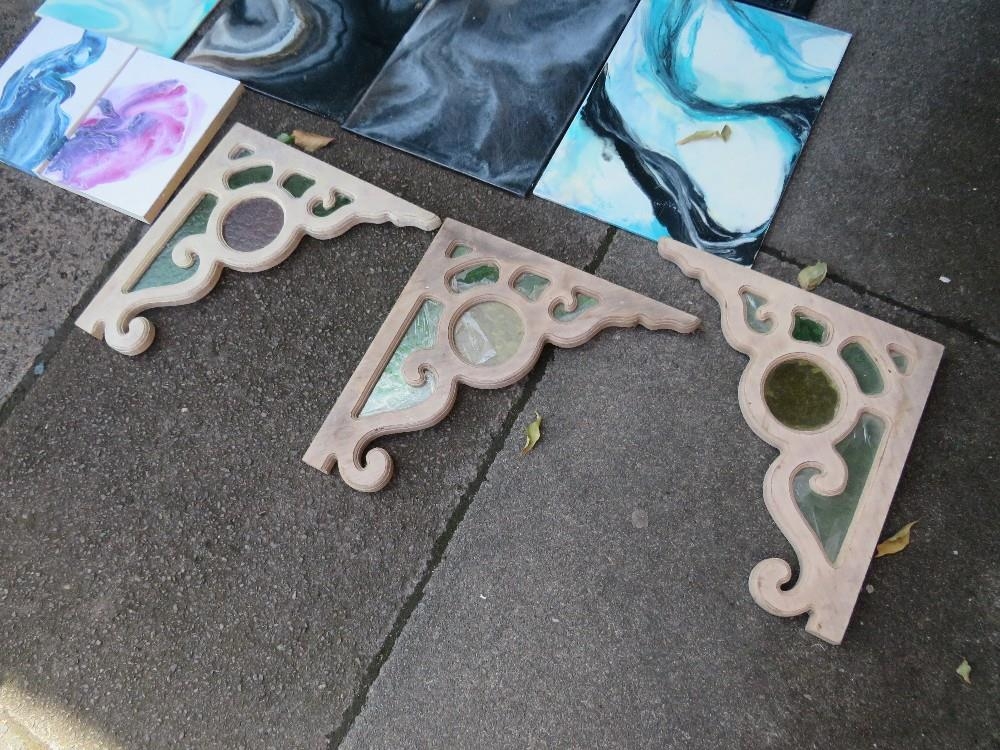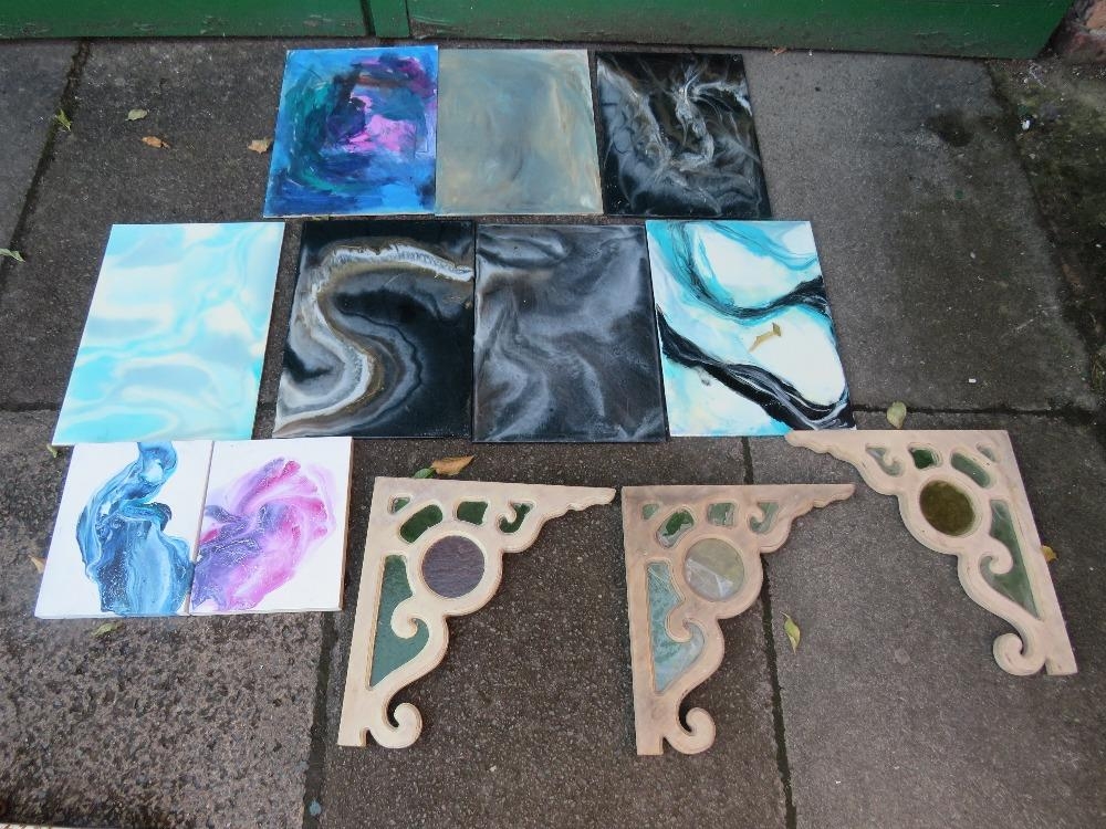 THREE GOTHIC STYLE BRACKETS WITH A QUANTITY OF PAINTED PANELS