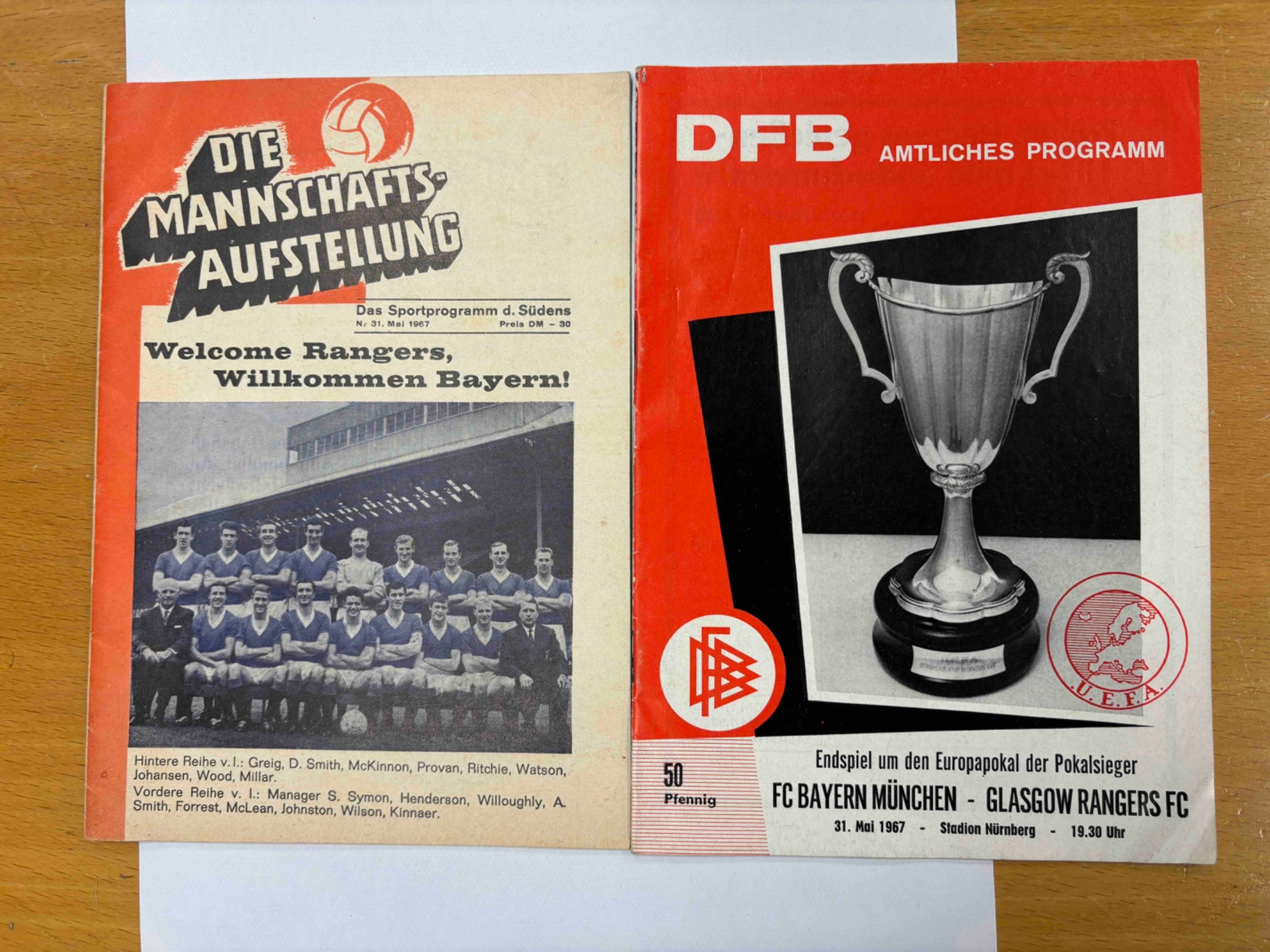 Rangers x 2 programmes - 1967 ECWC Final v Bayern Munich plus stadium issue. VG