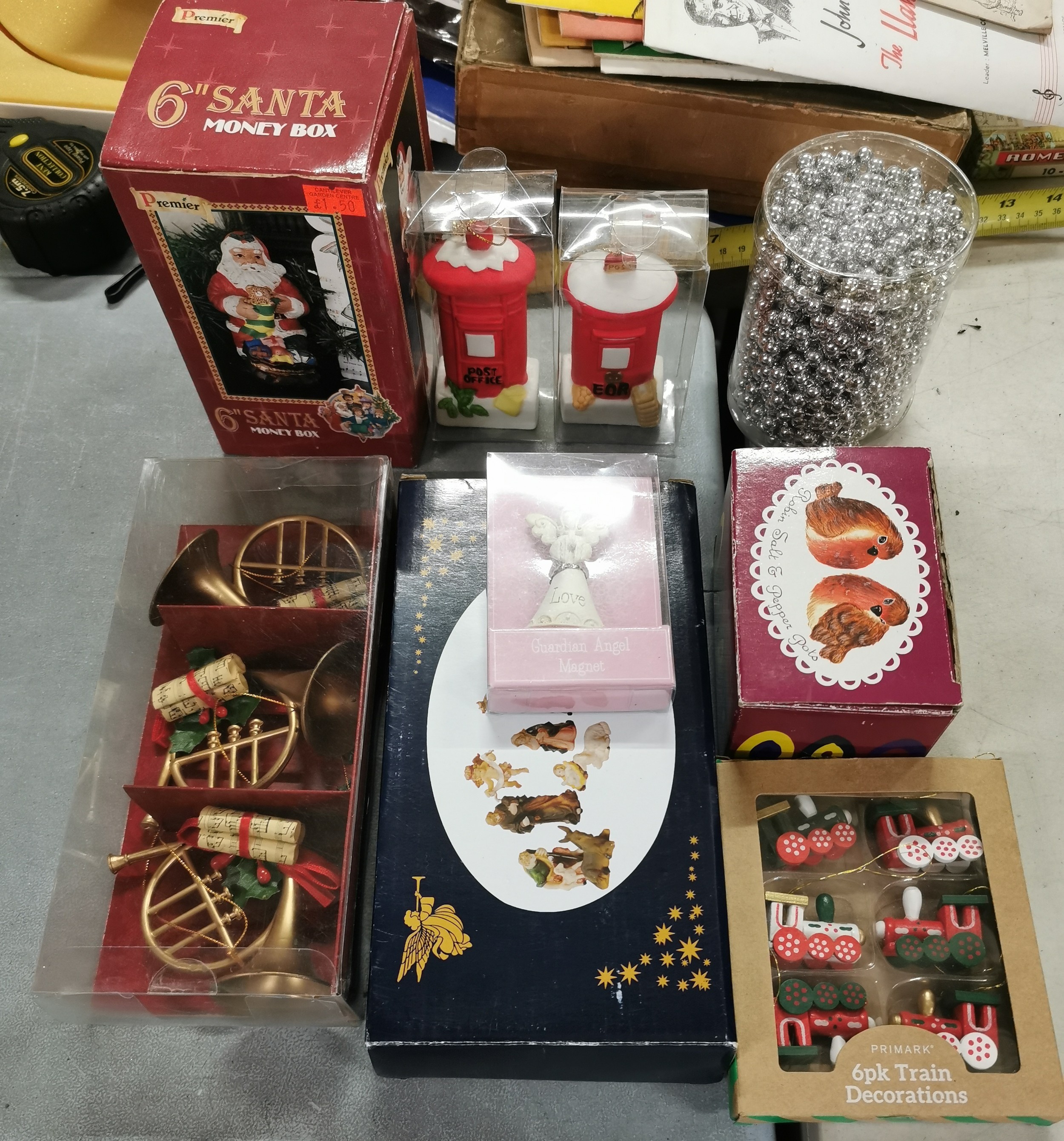 Bundle of boxed, mostly unused christmas miscellaneous