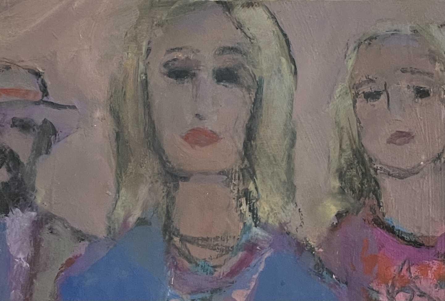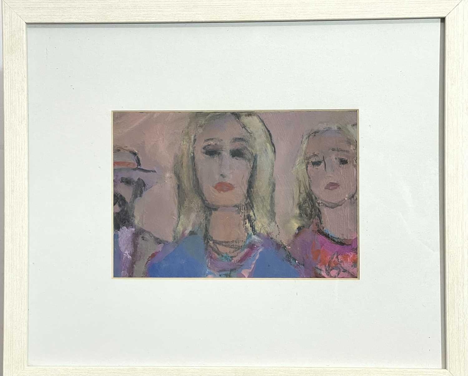 Colin ORCHARD (1935) Two blondes and a gentleman wearing a fedora Oil on board Signed to the verso 14cm x 21cm