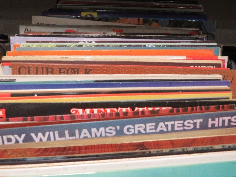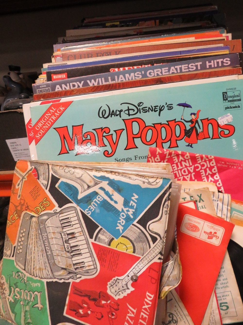 A tray of assorted LP records and 7" singles to include Disney etc