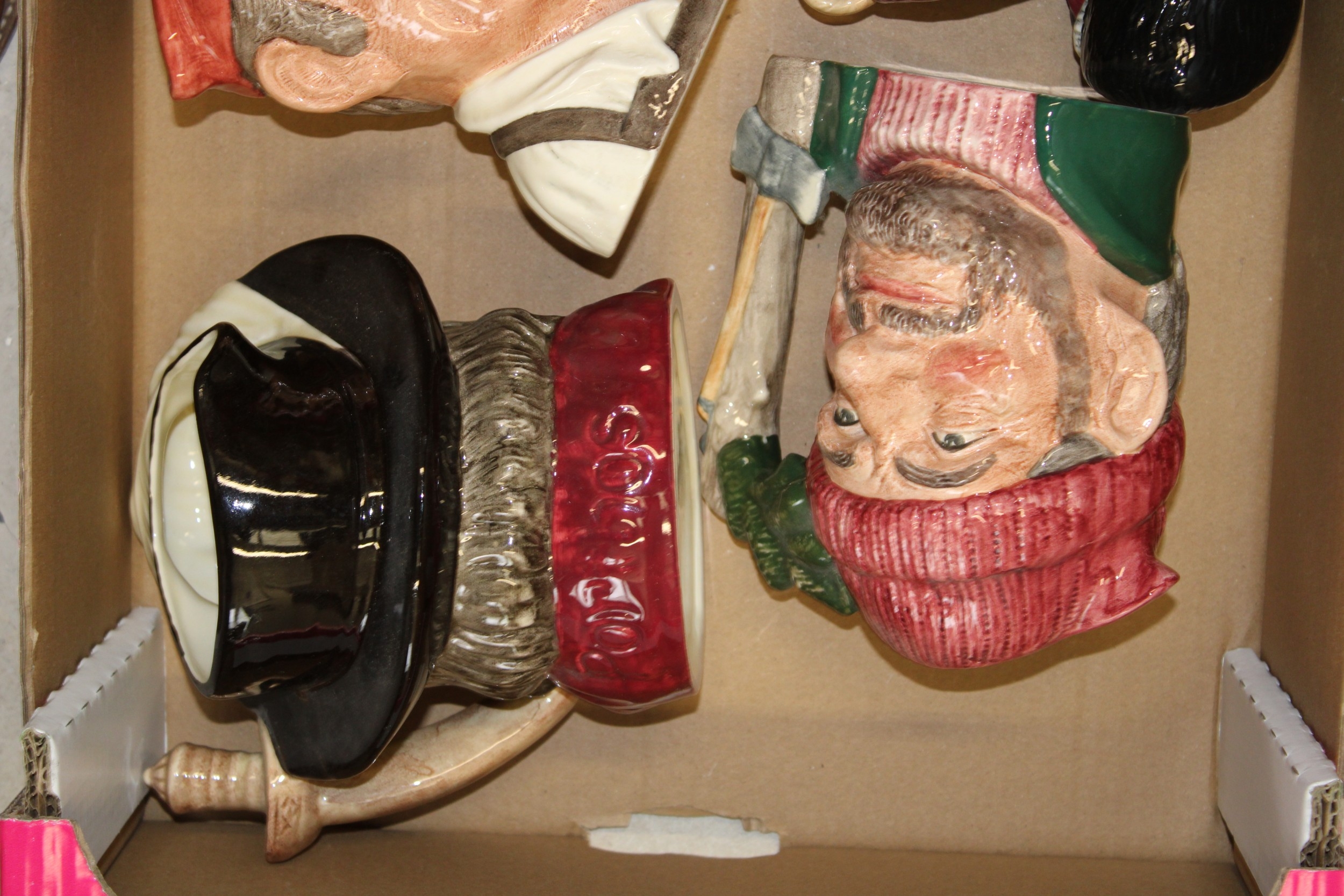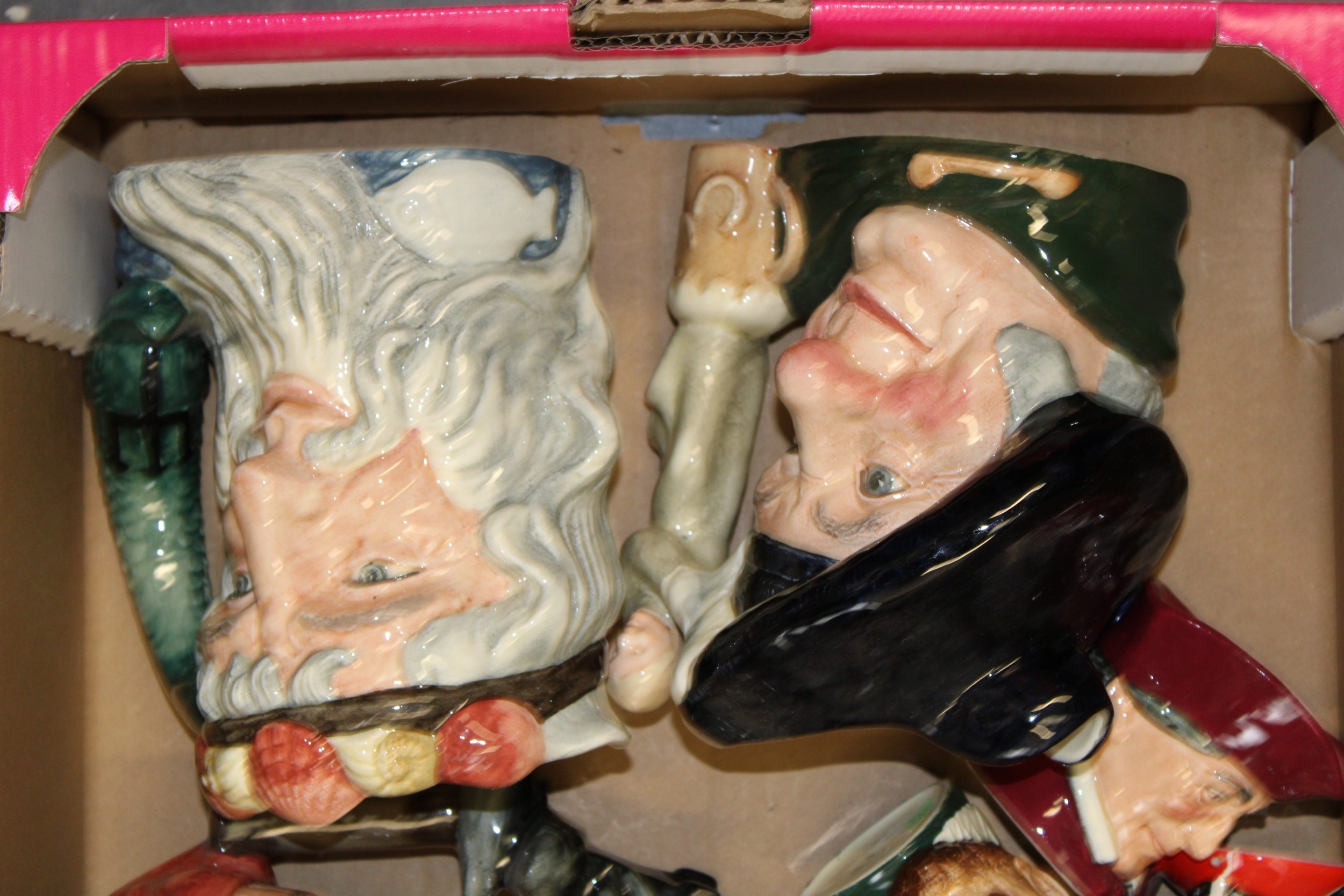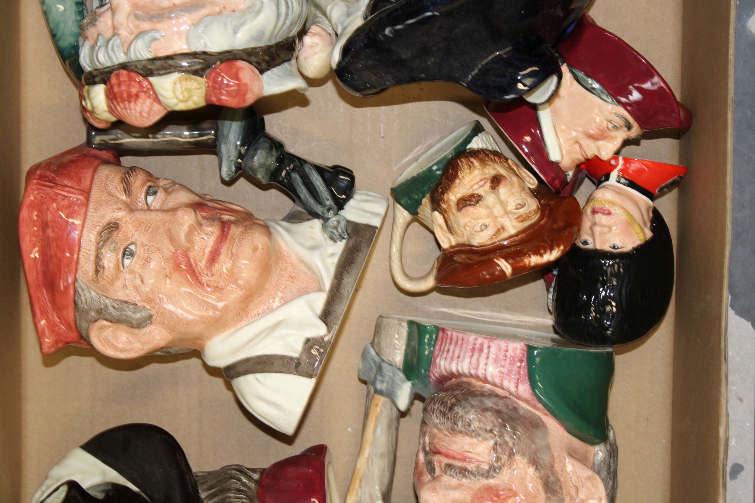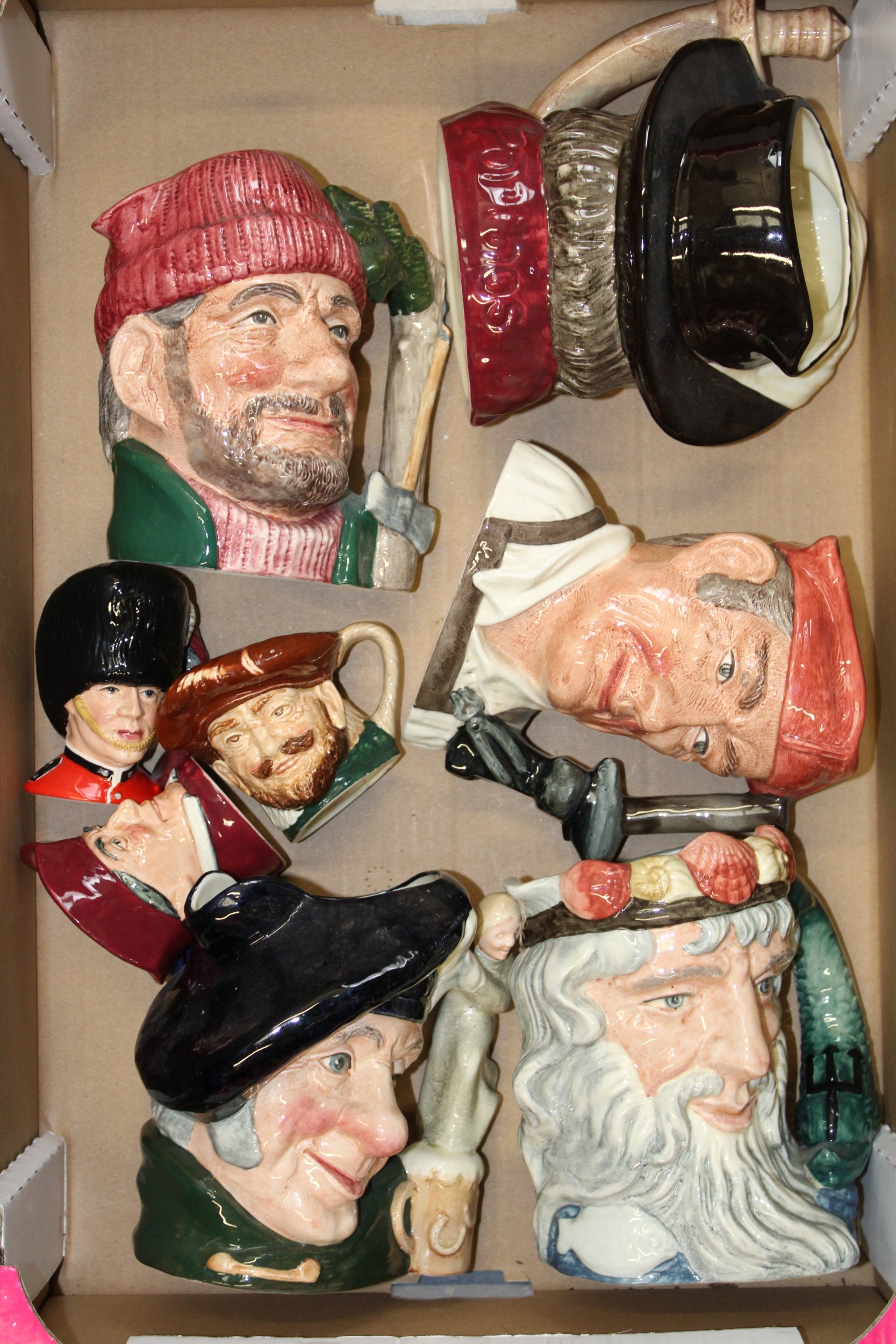 Large Royal Doulton character jugs to include Tam o'Shanter, Porthos and others with small jugs (8).