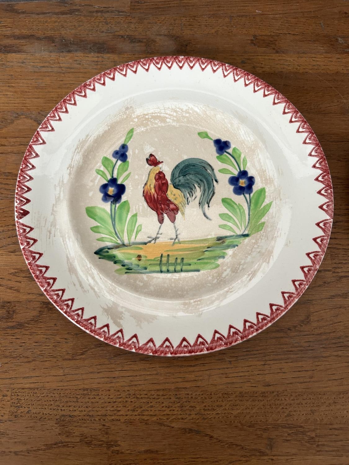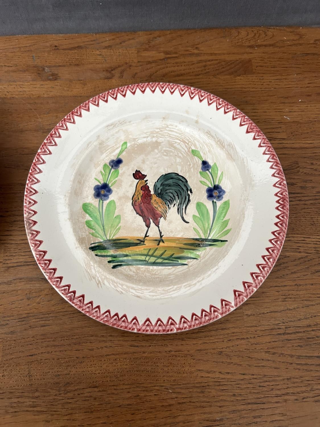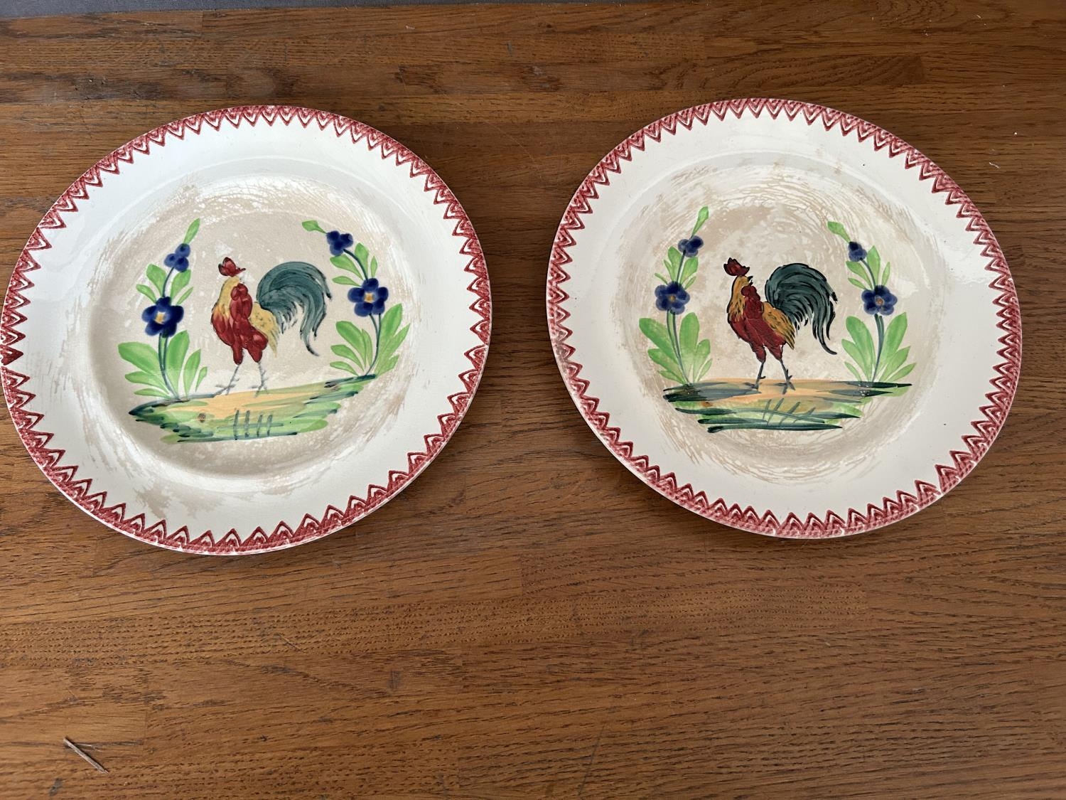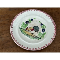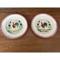 x2 Antique 1920's French Hand Painted Cockerel Wall Plates (23cm Diameter/each)