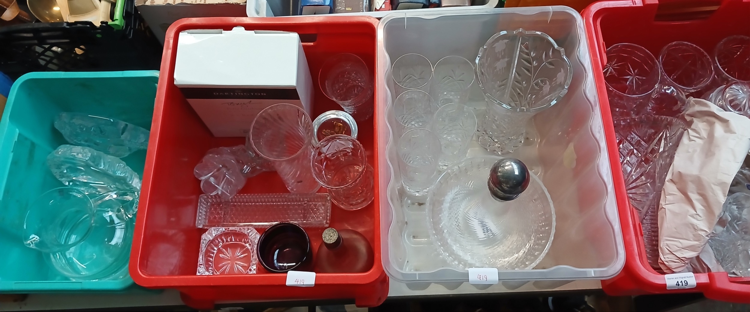 4 boxes of glass ware including ships decanter, drinking glasses, vases, 2 Mats Jonasson crystal figures - Eagle and Squirrel, etc