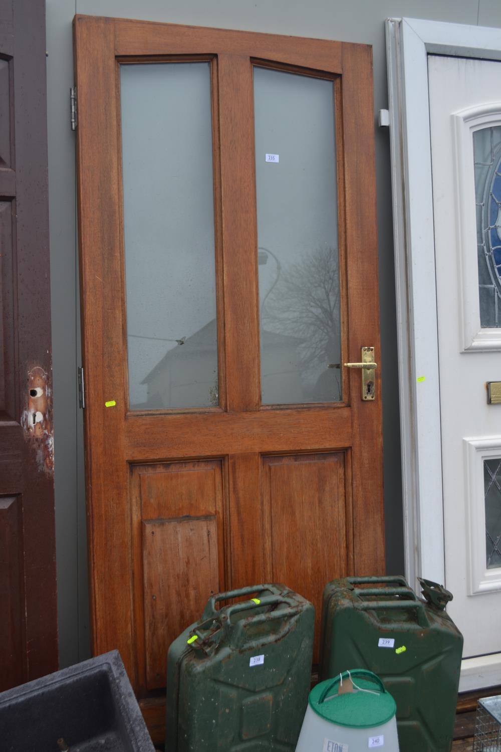 Hardwood external door. With repaired panel. W84cm