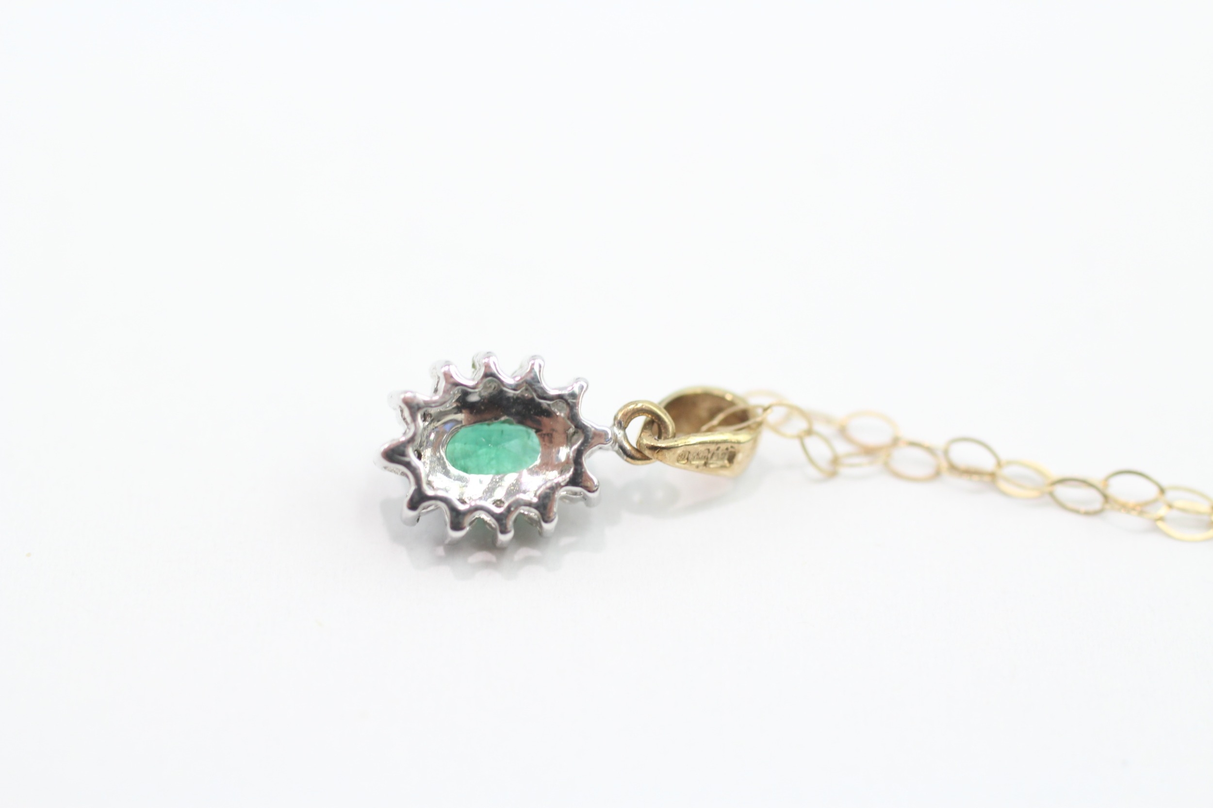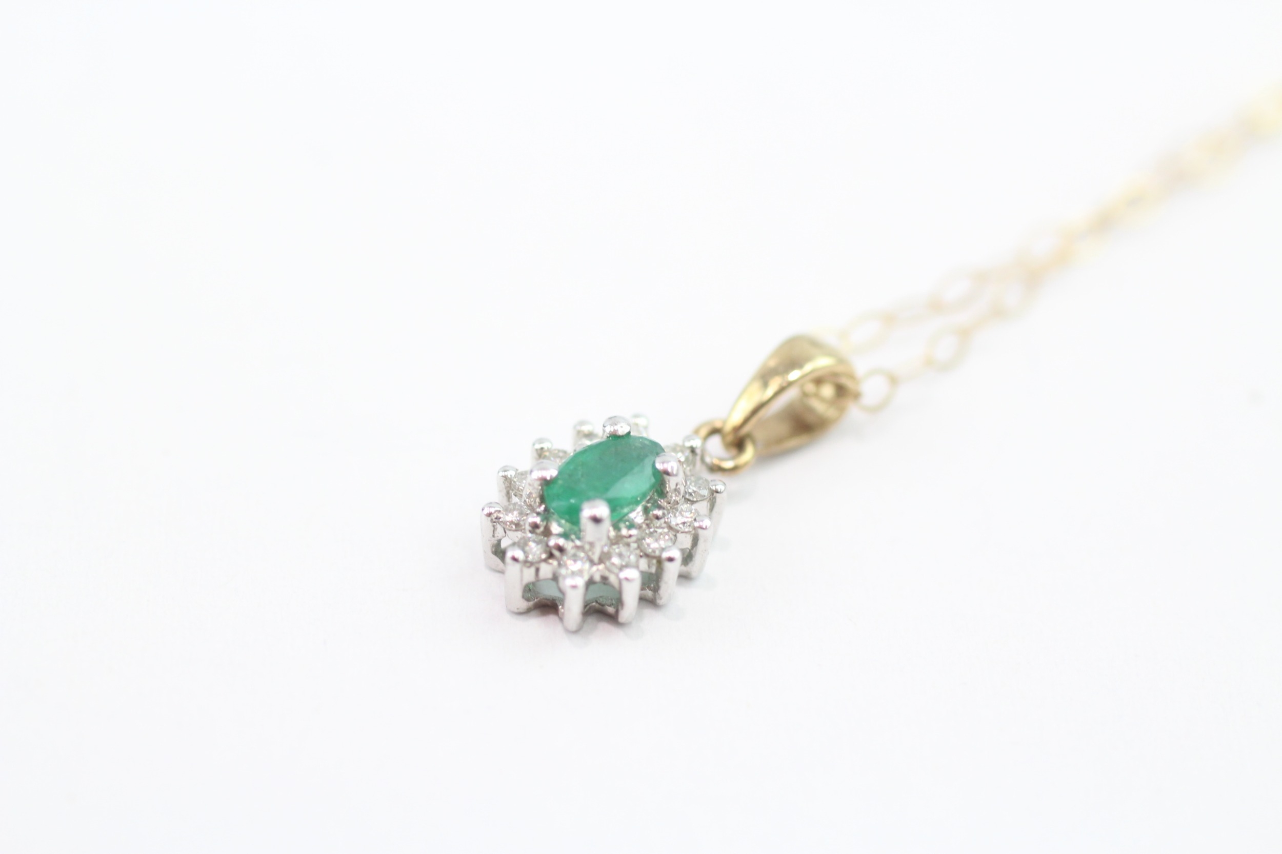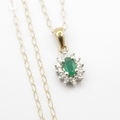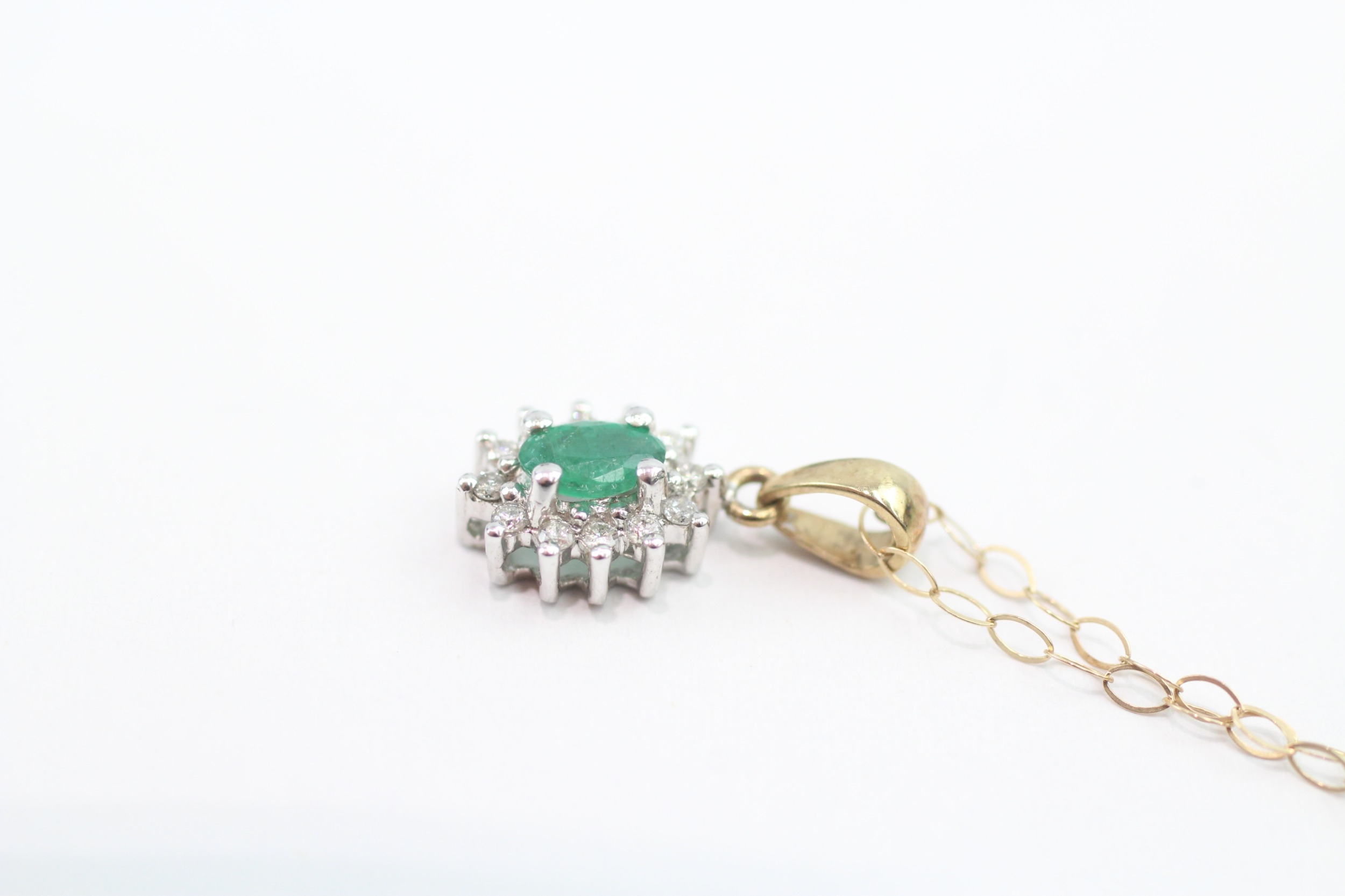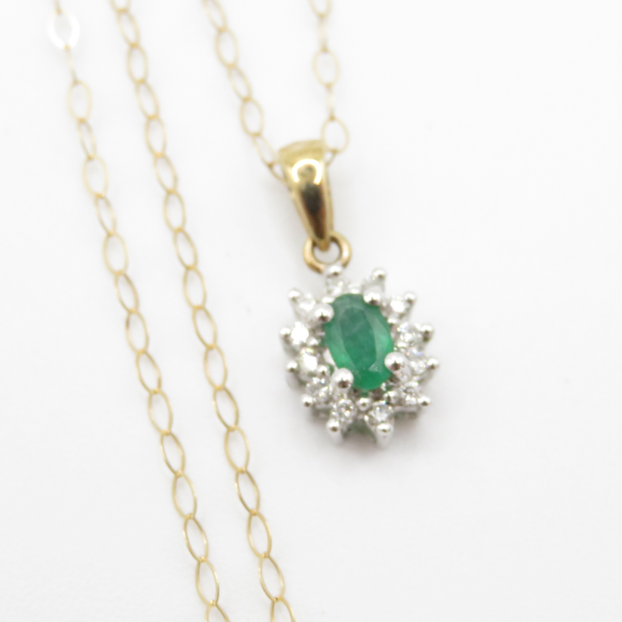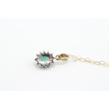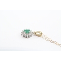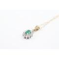 9ct gold emerald & diamond cluster pendant necklace (1.1g)