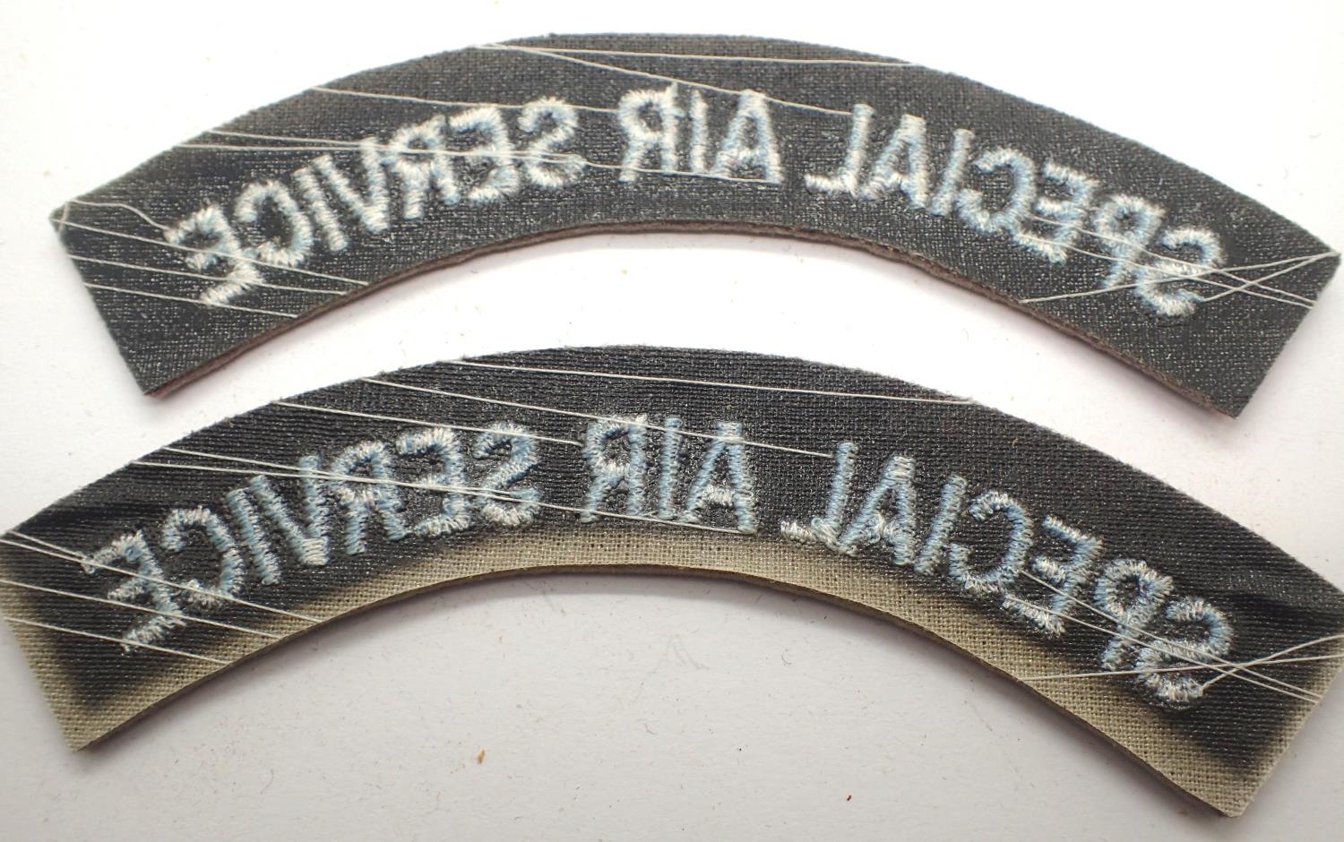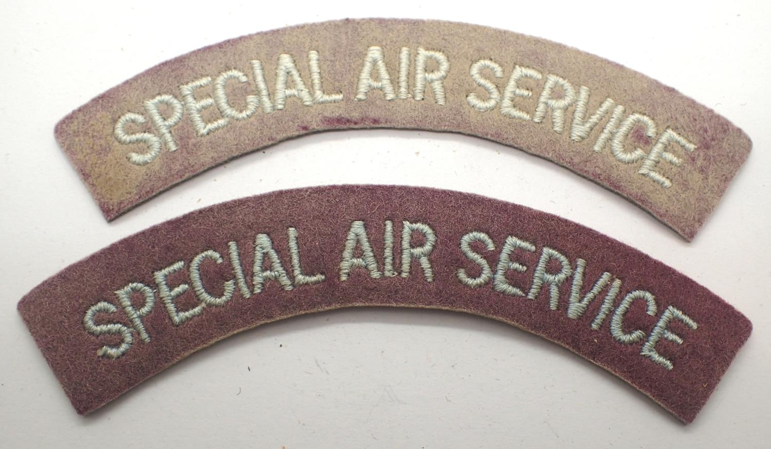 British WWII SAS Special Air Service pair of embroidered shoulder titles, faded. P&P Group 1 (£14+VAT for the first lot and £1+VAT for subsequent lots)