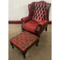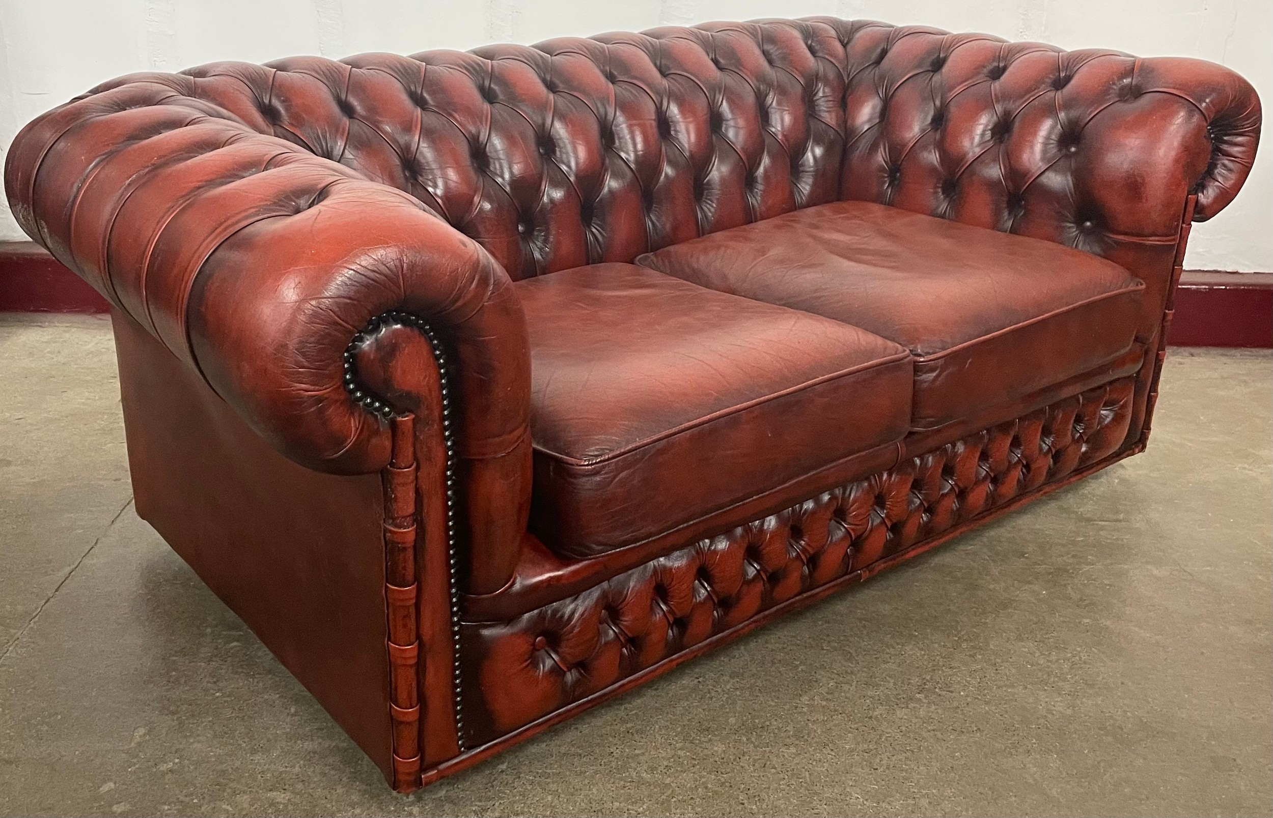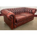 An oxblood red leather Chesterfield settee