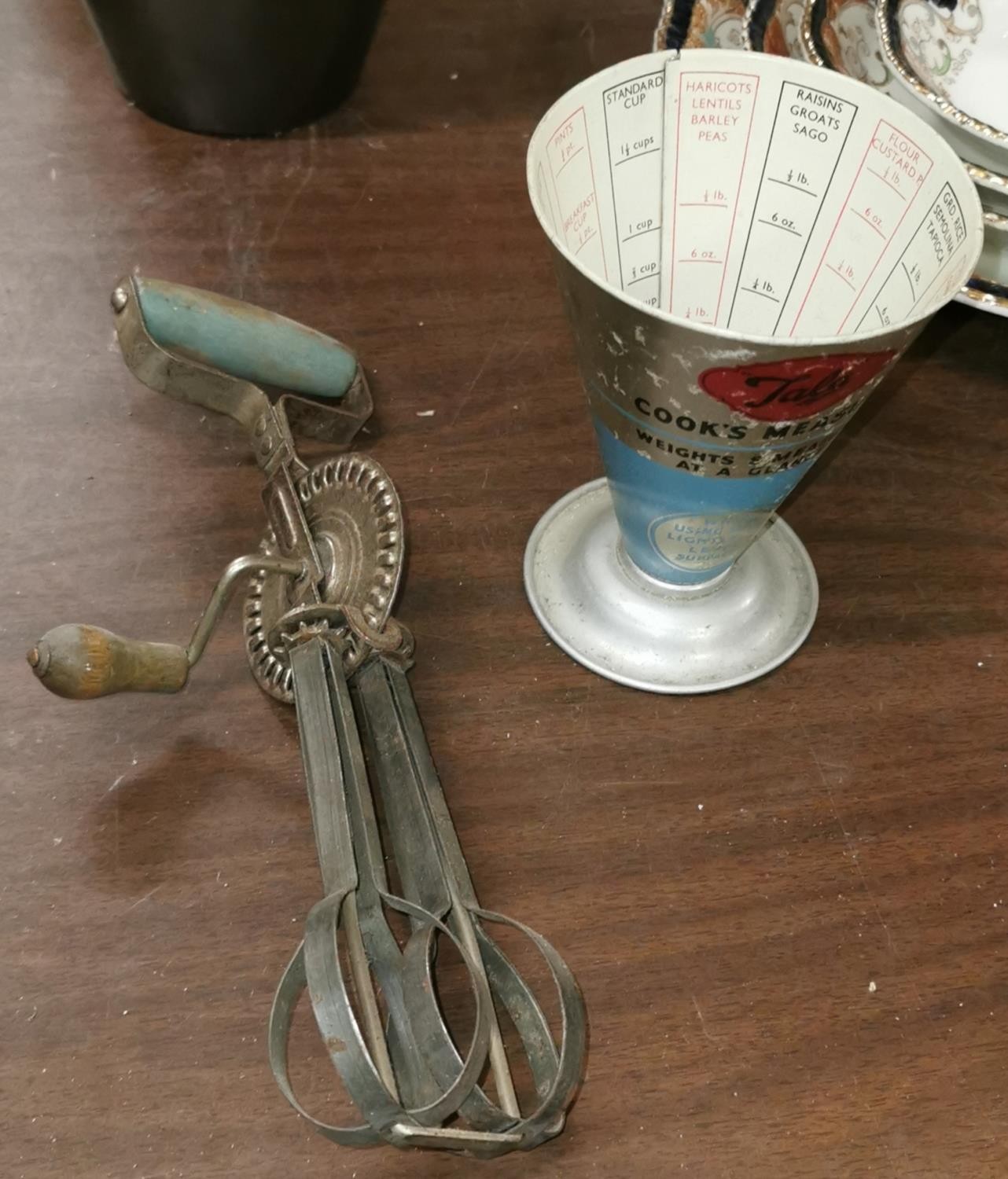 Vintage kitchenalia hand whisk & Tala cooks measure