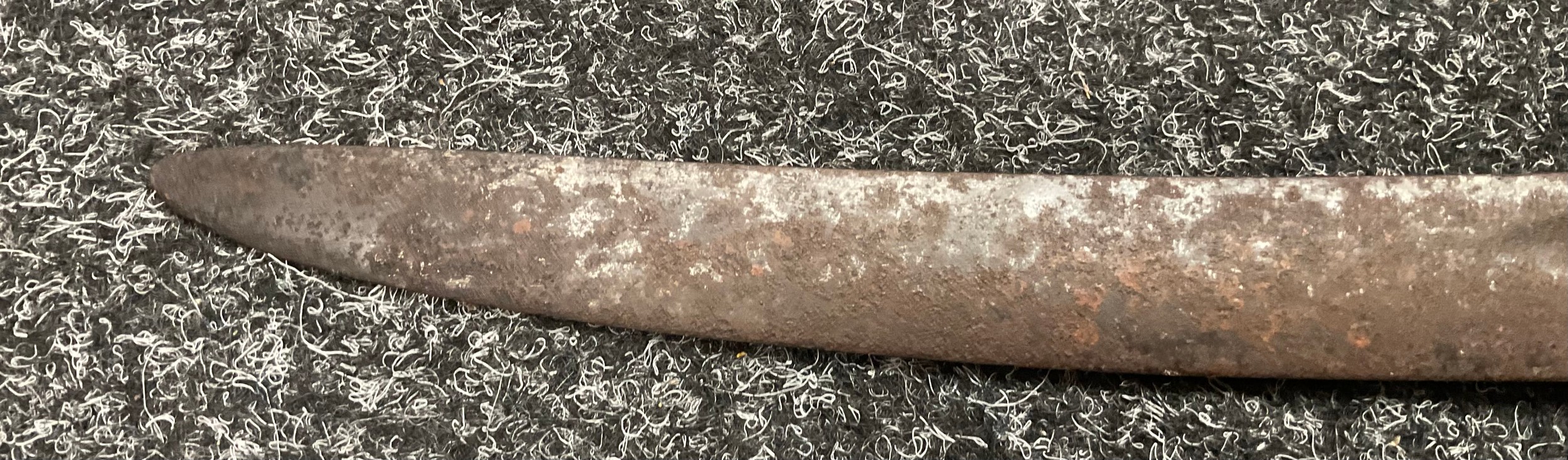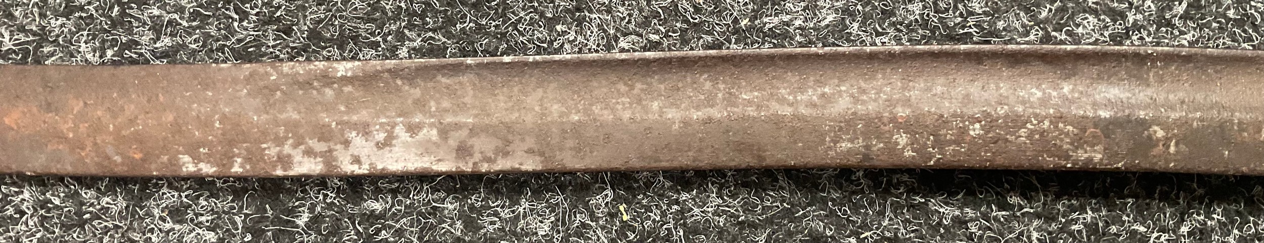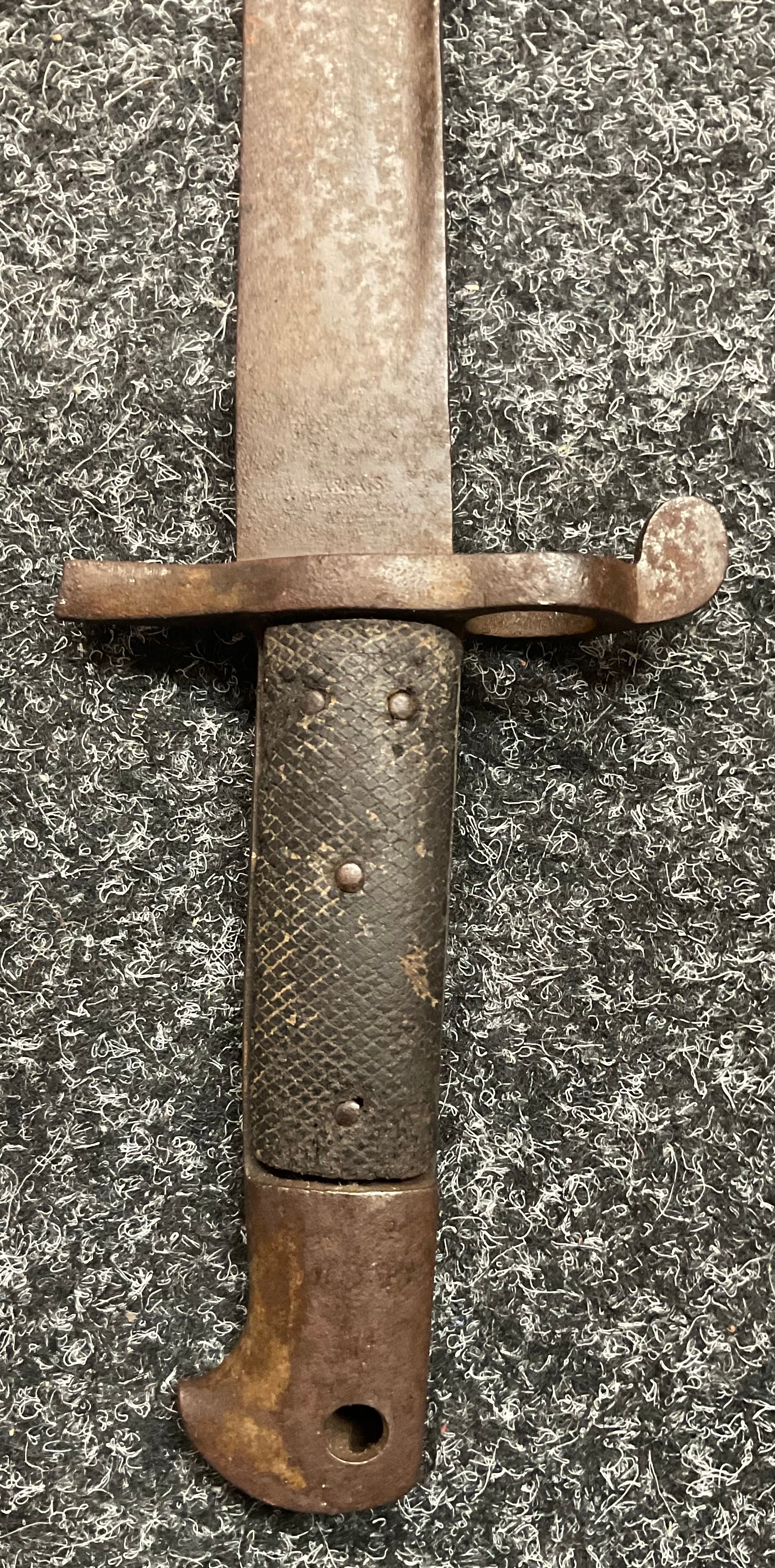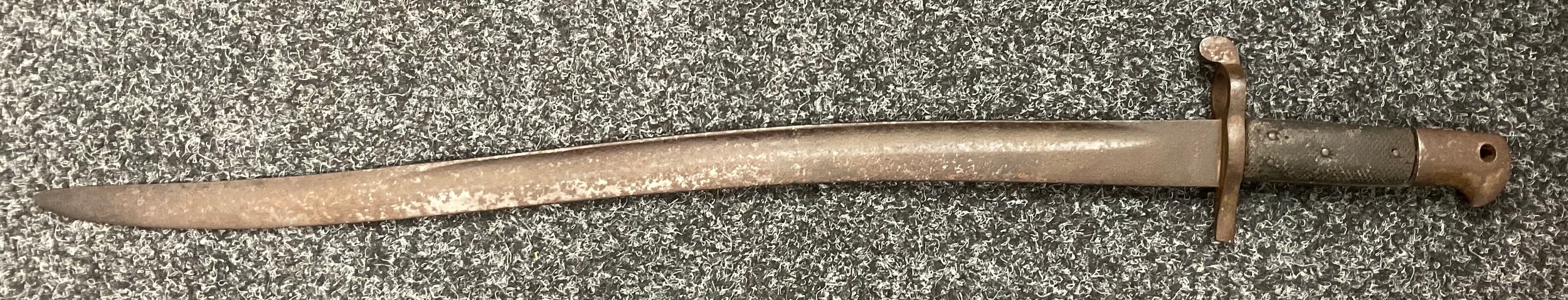 A 19th century British Army P1856/60 yataghan sword bayonet, with curved fullered blade, marked A. & A.S., missing scabbard and half of quillon, blade 57cm in length, 70.5cm total length; others, an Italian Army M1889 revolver holster; 1887 pattern heavy cavalry officers leather sword case; Canadian fur hat; entrenching tool; leather ammo pouch; waterbottles; webbing, etc (qty)