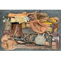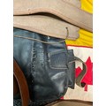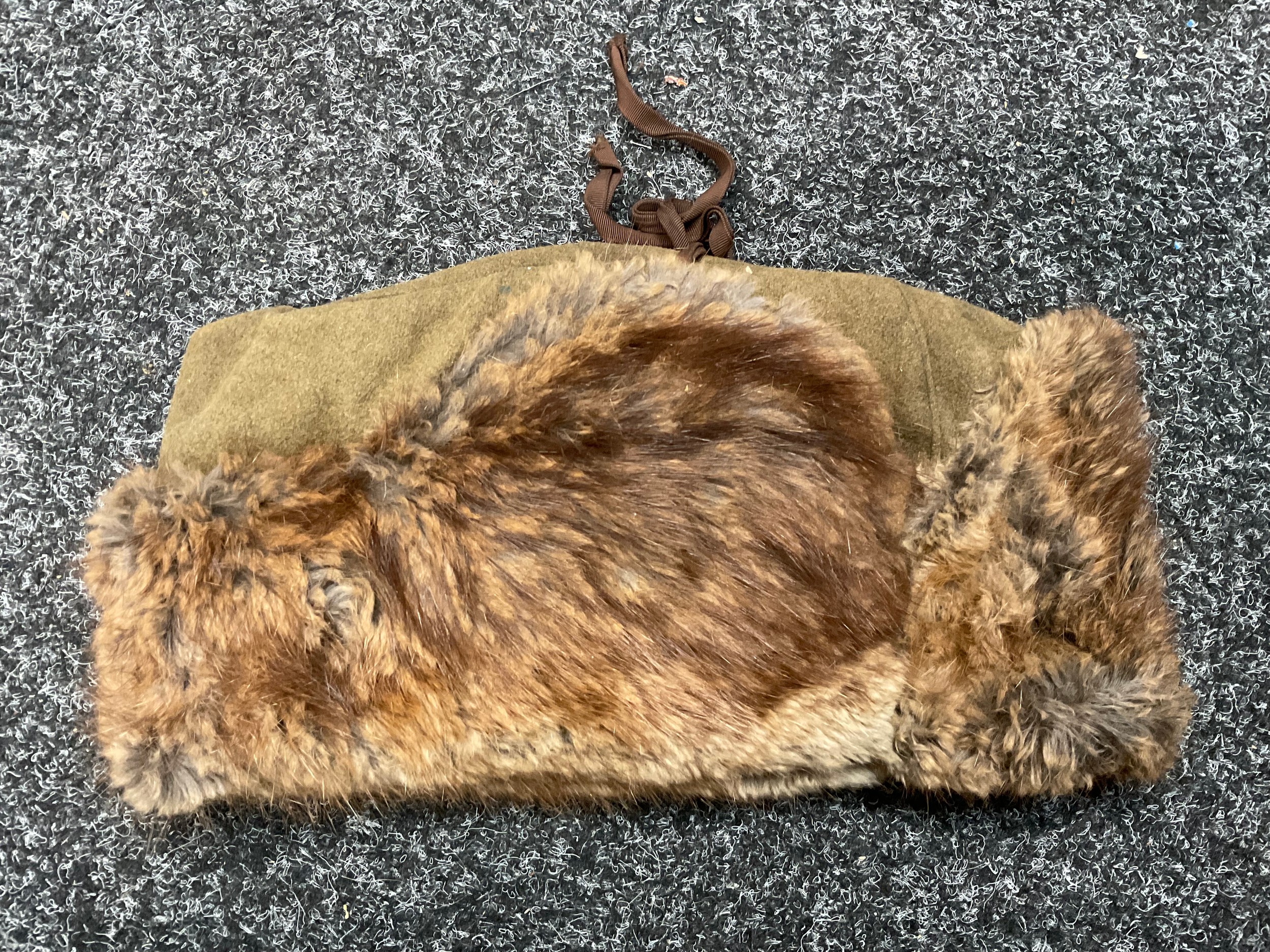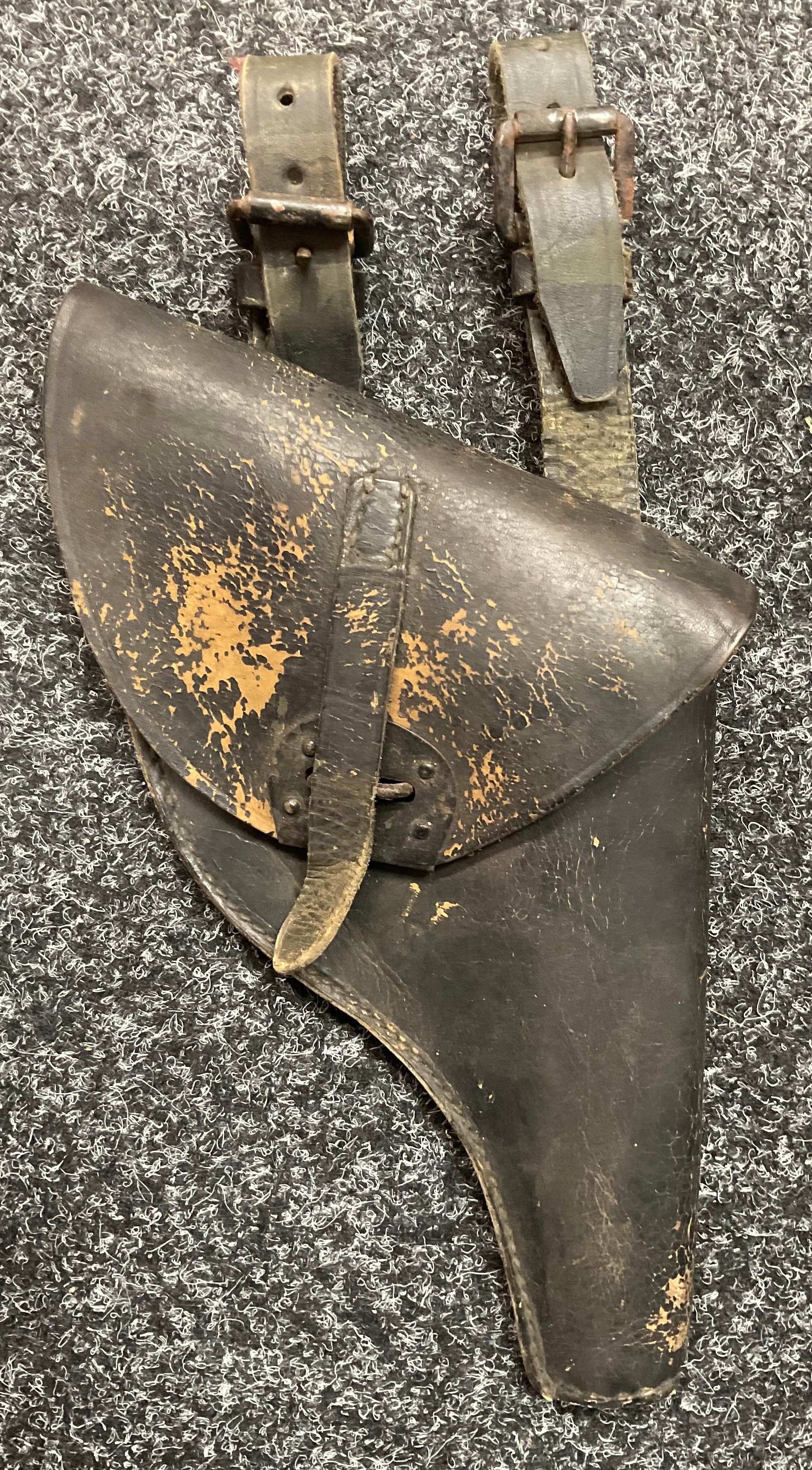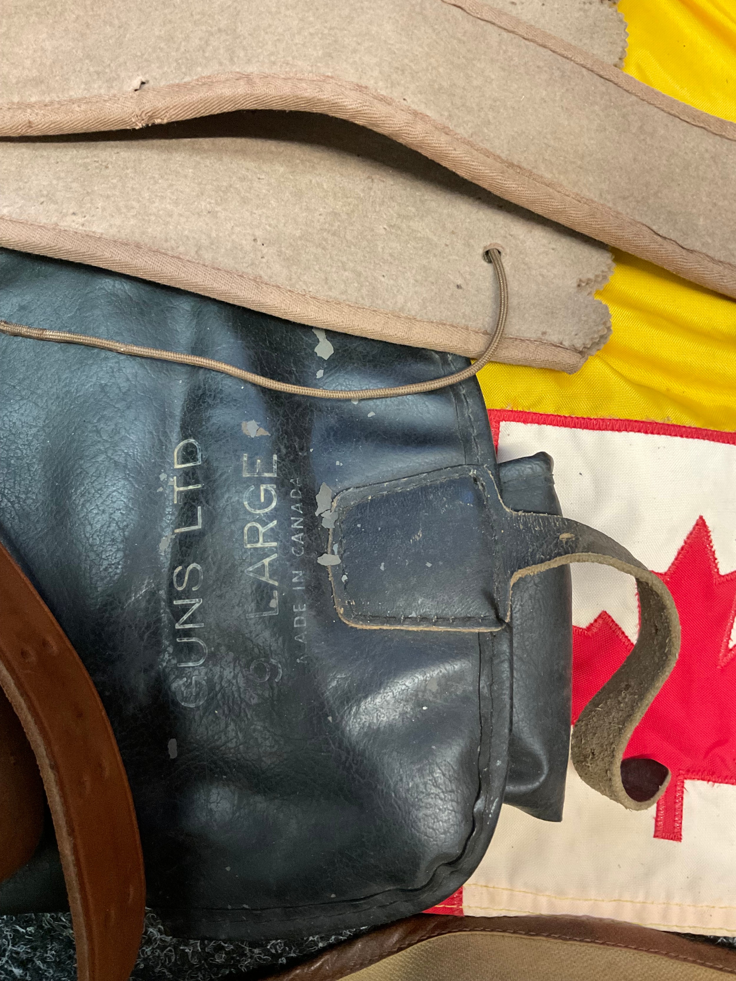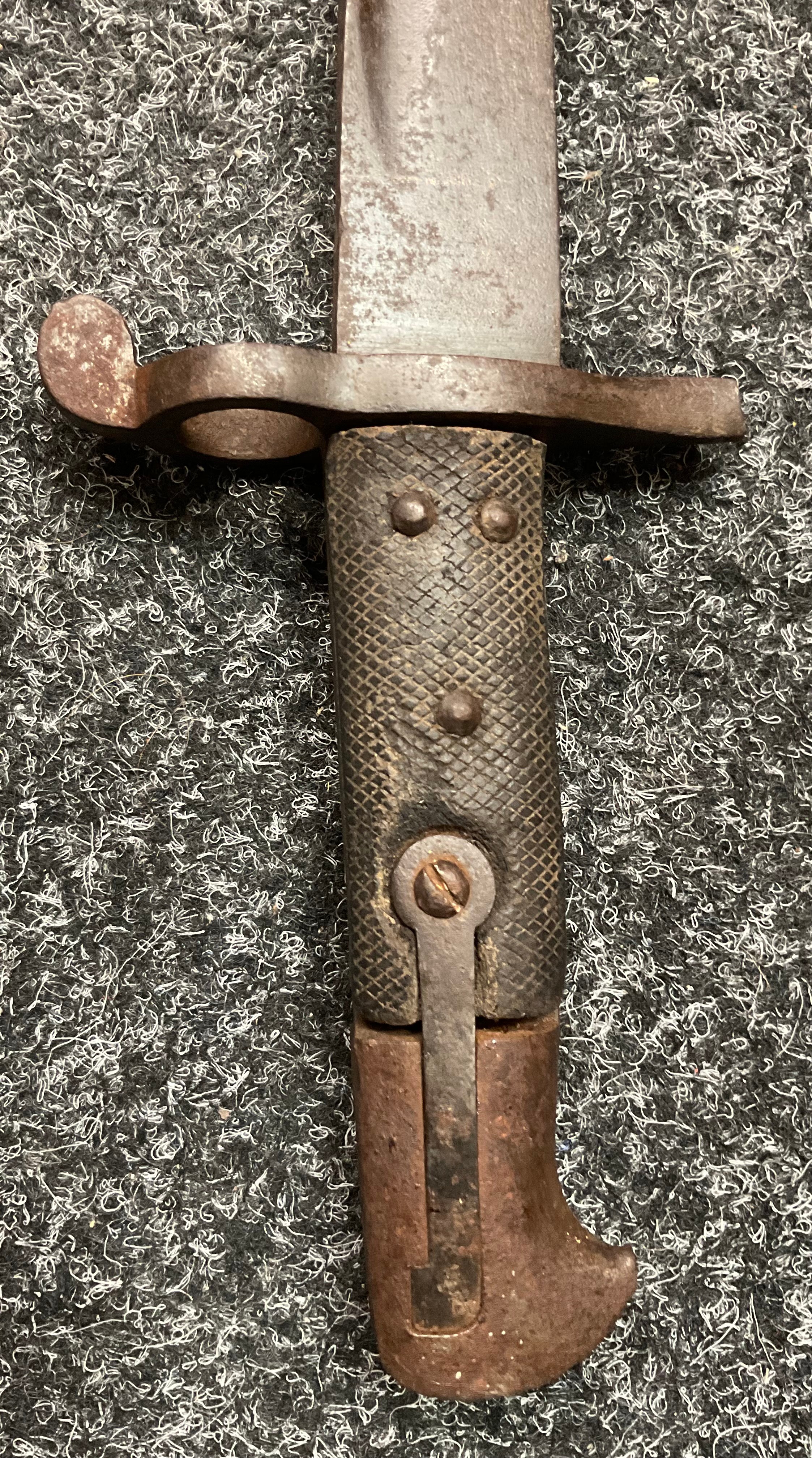 A 19th century British Army P1856/60 yataghan sword bayonet, with curved fullered blade, marked A. & A.S., missing scabbard and half of quillon, blade 57cm in length, 70.5cm total length; others, an Italian Army M1889 revolver holster; 1887 pattern heavy cavalry officers leather sword case; Canadian fur hat; entrenching tool; leather ammo pouch; waterbottles; webbing, etc (qty)