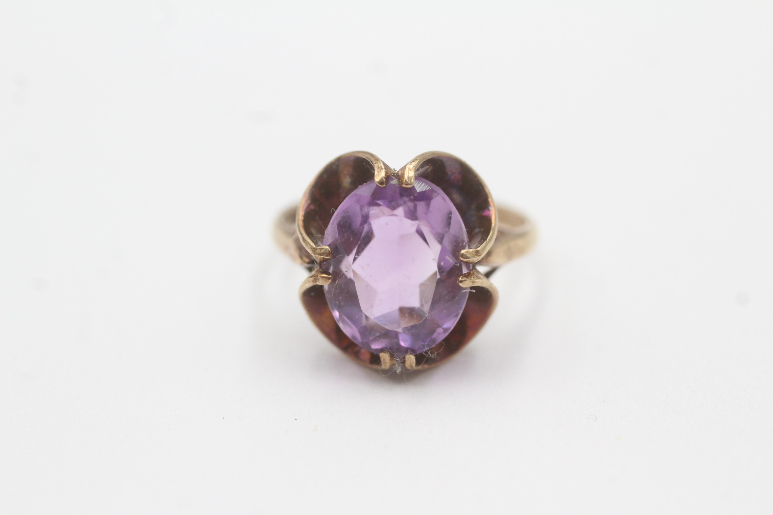 9ct gold amethyst solitaire ring (3.1g) Size N