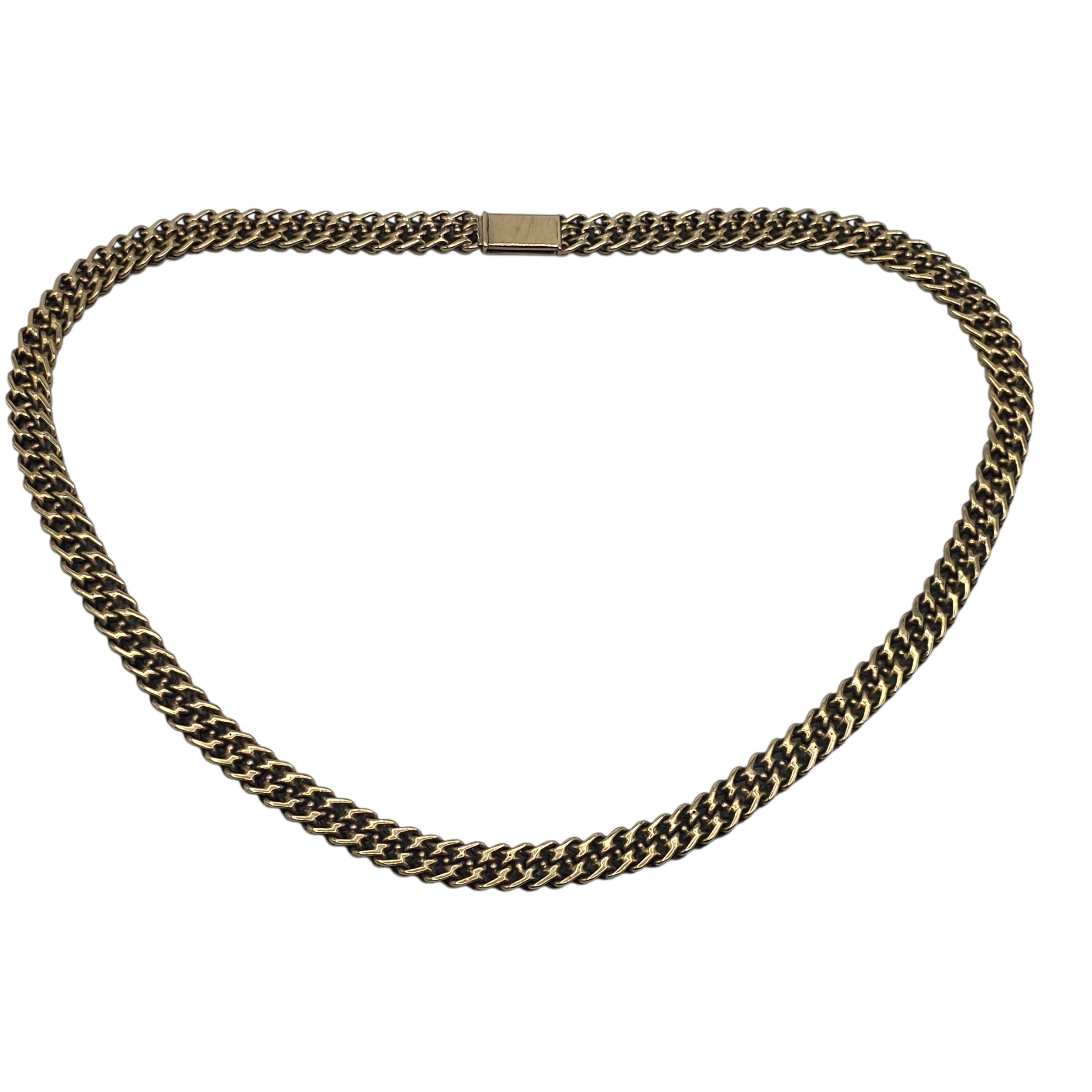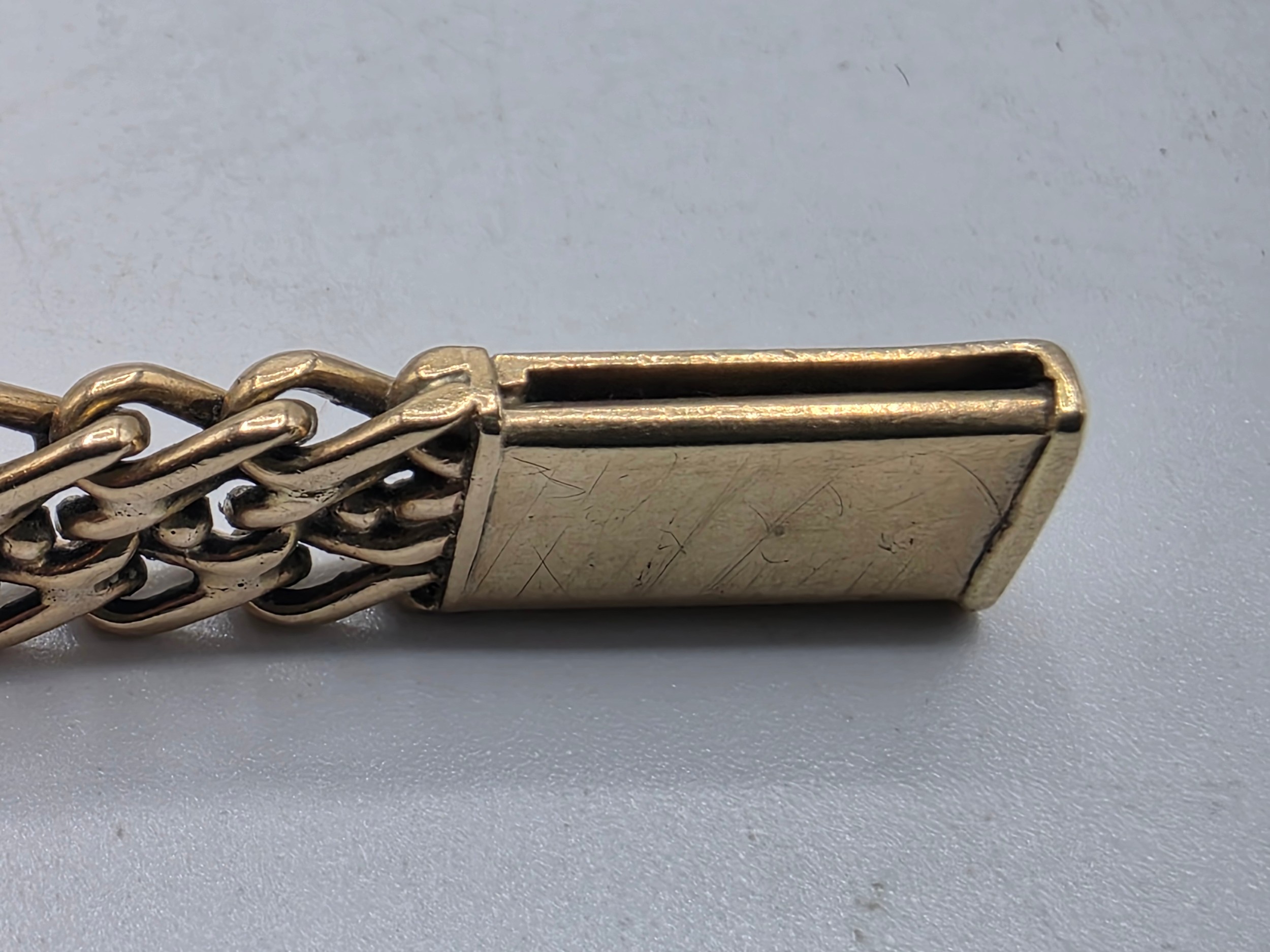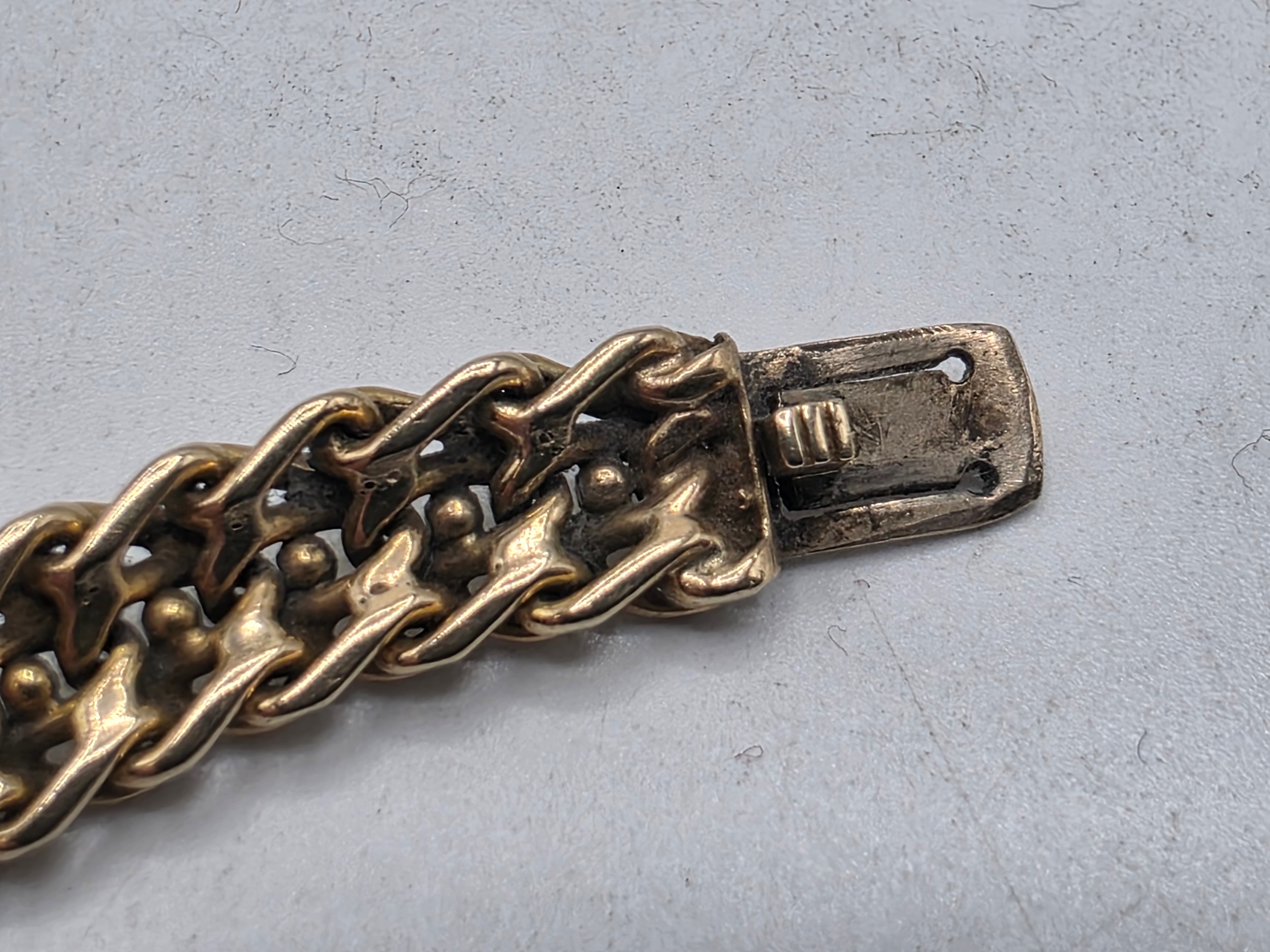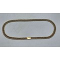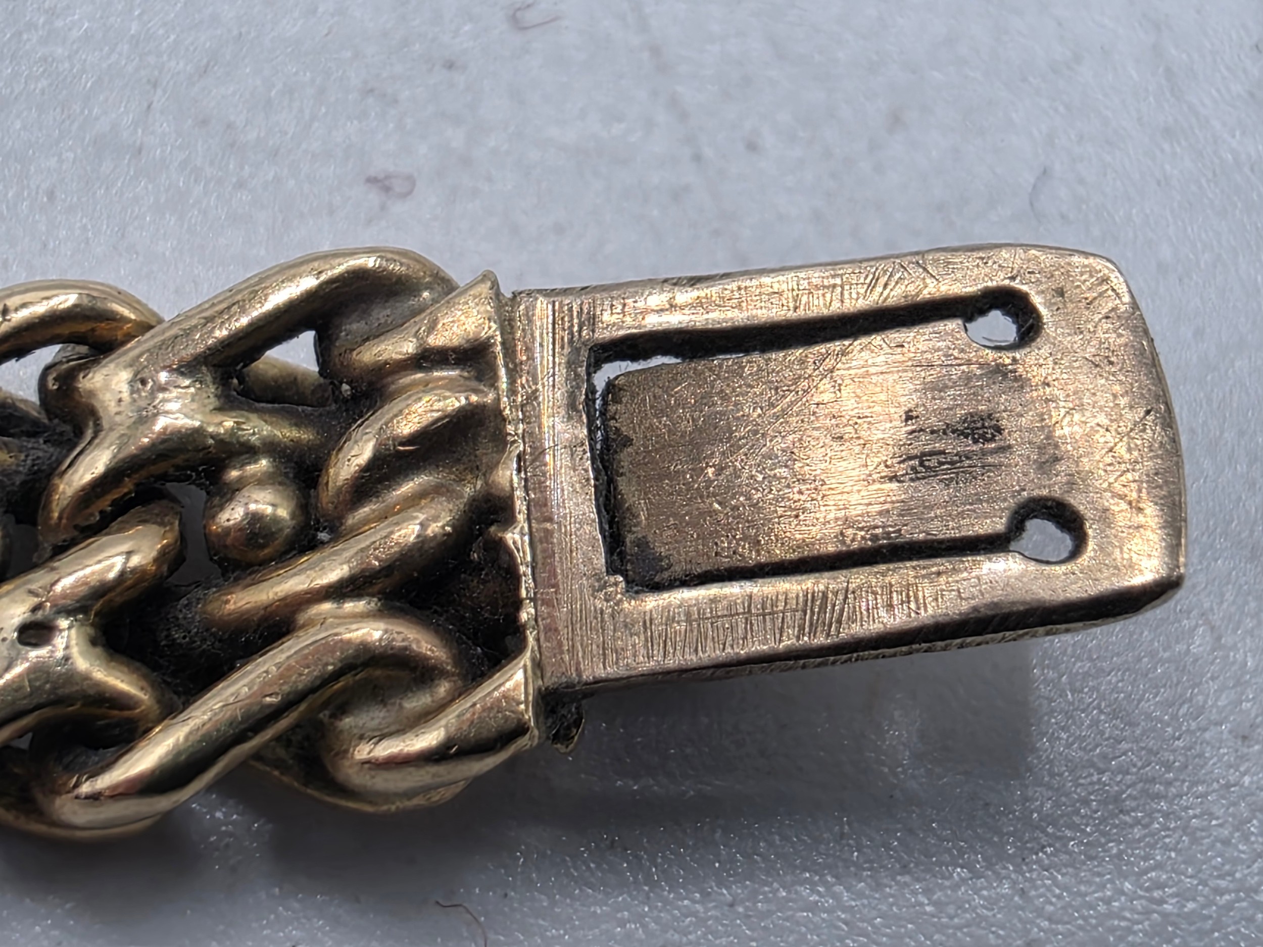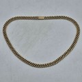 An unmarked yellow metal flat fancy link necklace 44 cm 35.5 g