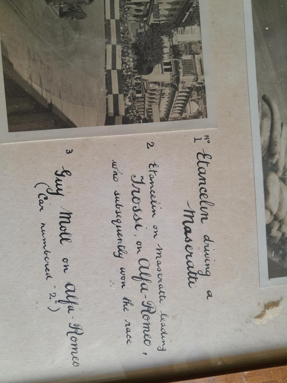 Vintage black and white photographs framed and glazed , motor racing interest
