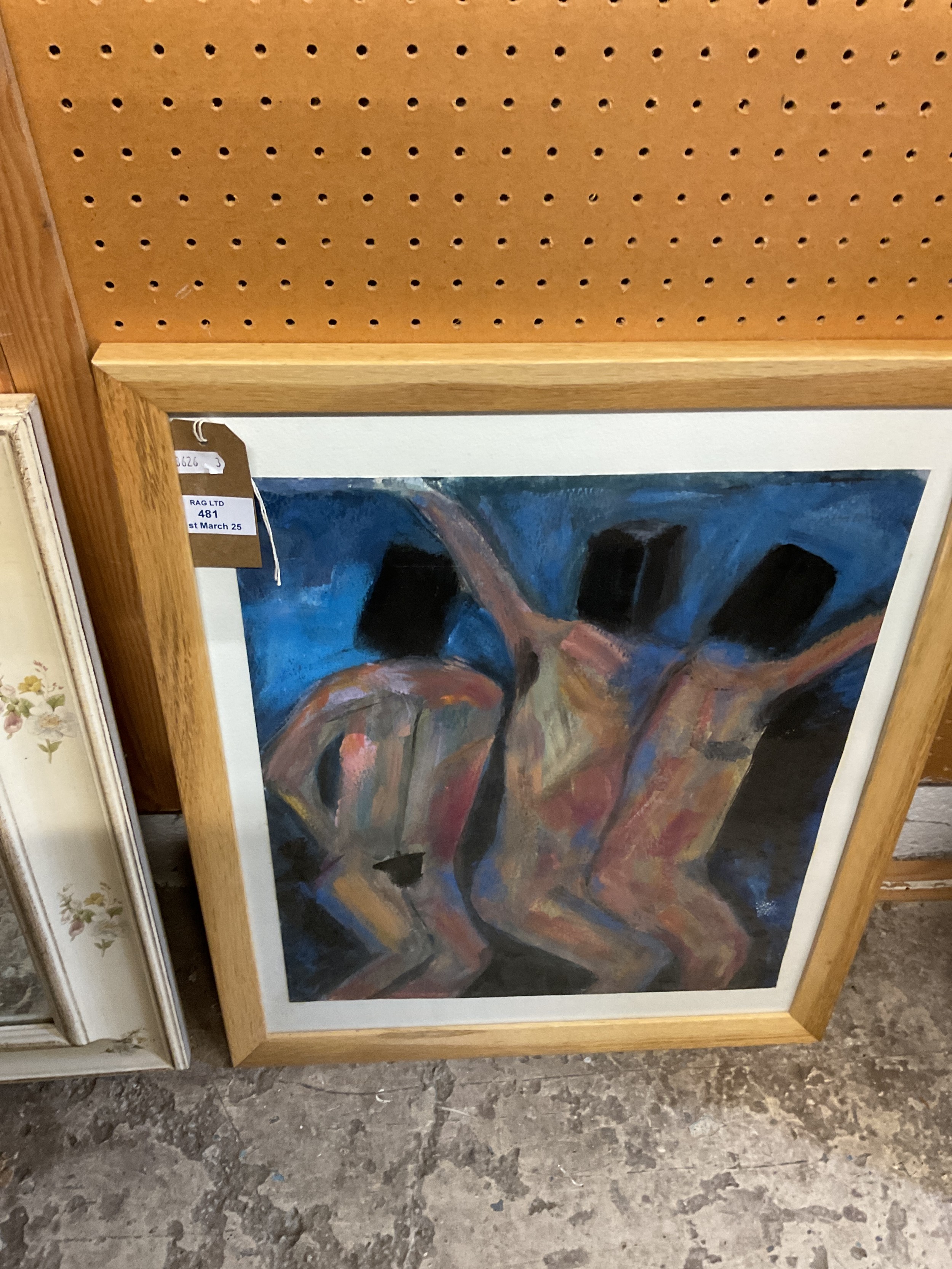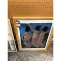 A framed and glazed Hilary McMaster acrylic 'Male Dancing Figures'
