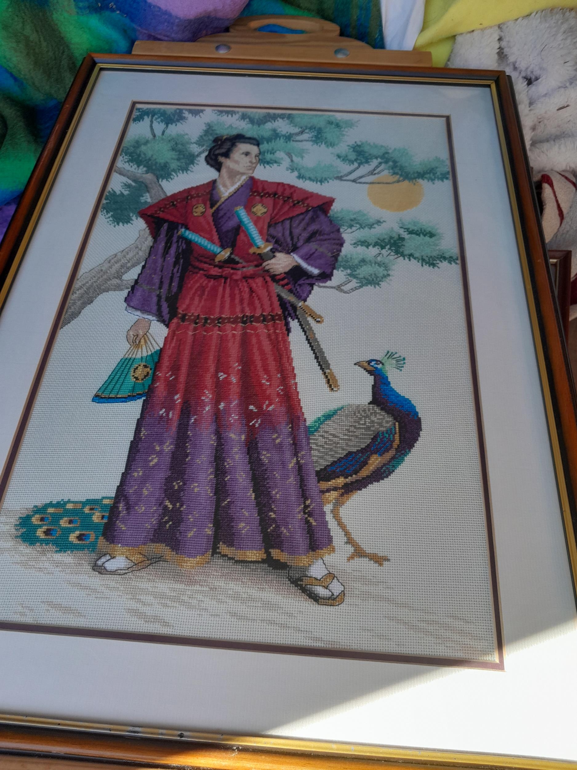 Radios pictures for re purposing tapestries, cross stich, one on stand, watercolour by J Neltley