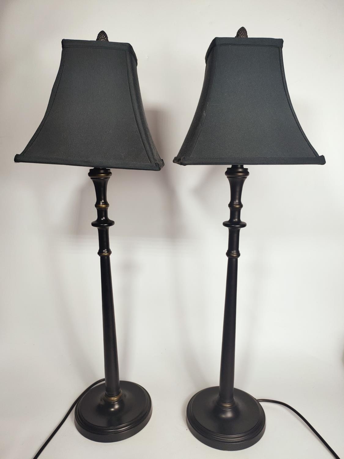 Pair of black lamps, 77cm