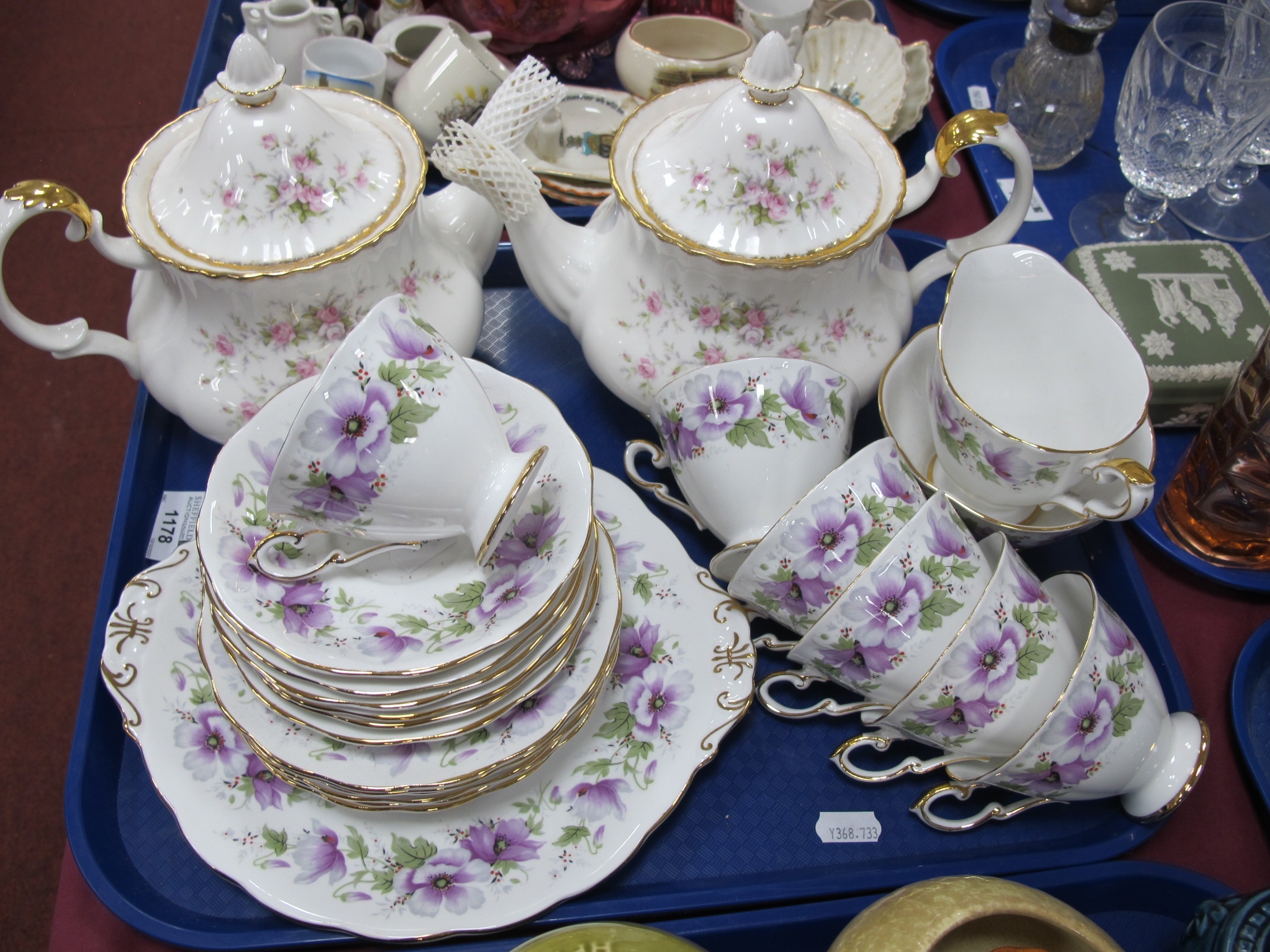 Royal Albert Victoria Rose Teapots, (second quality) x 2. Royal Standard Violetta tea service, twenty one pieces:- one Tray