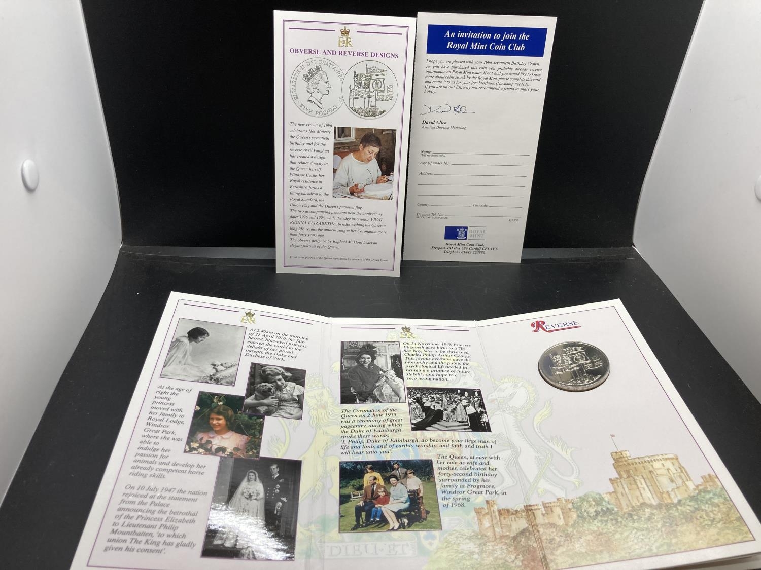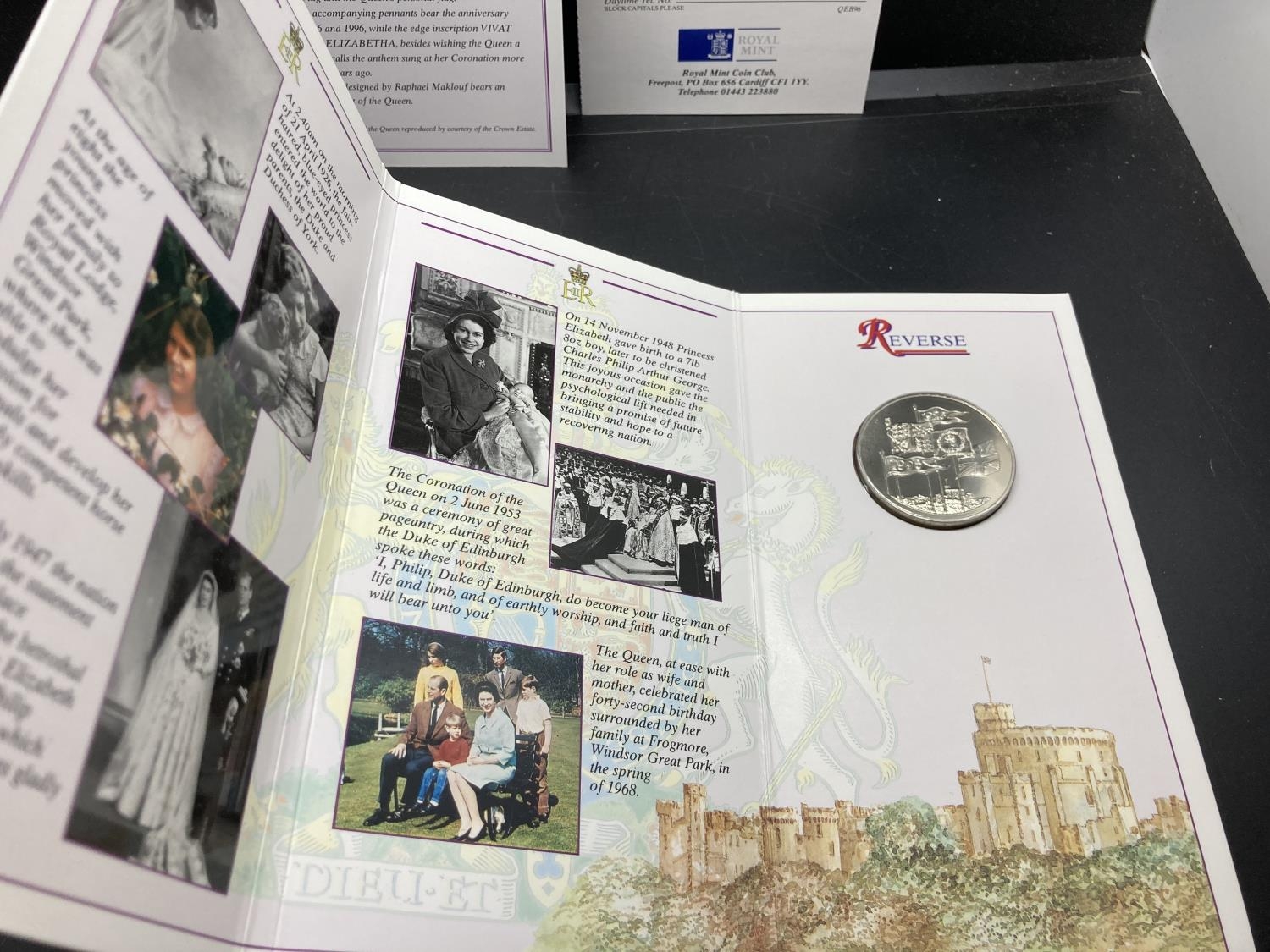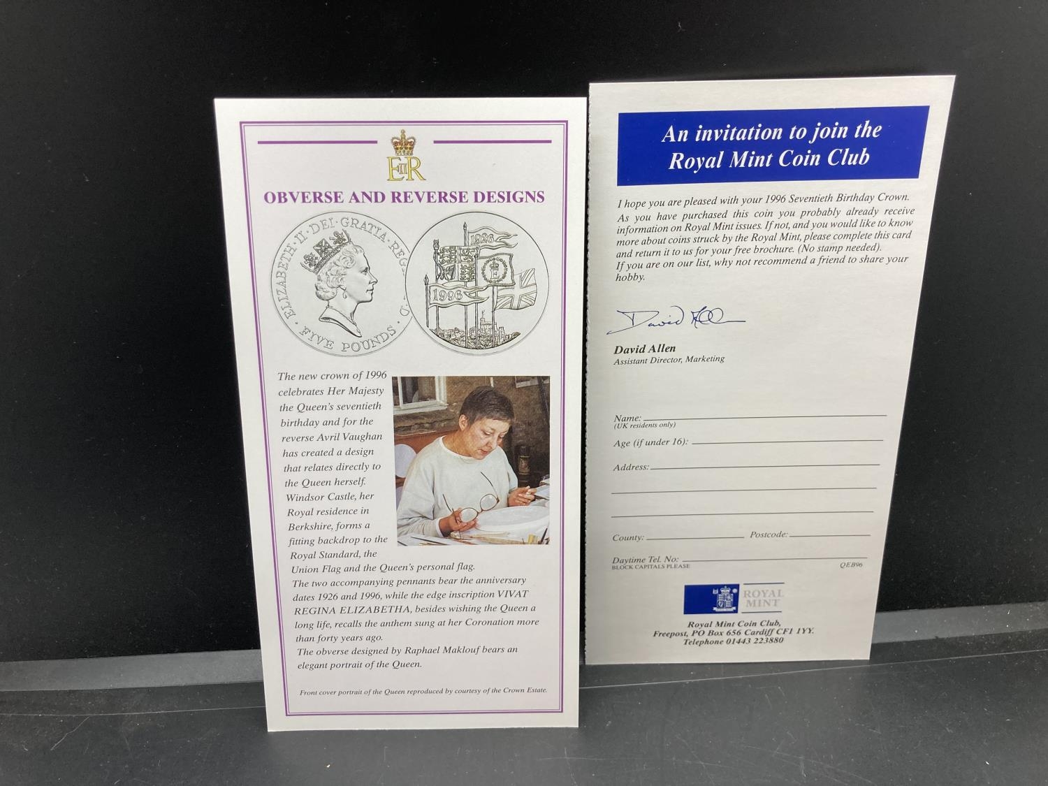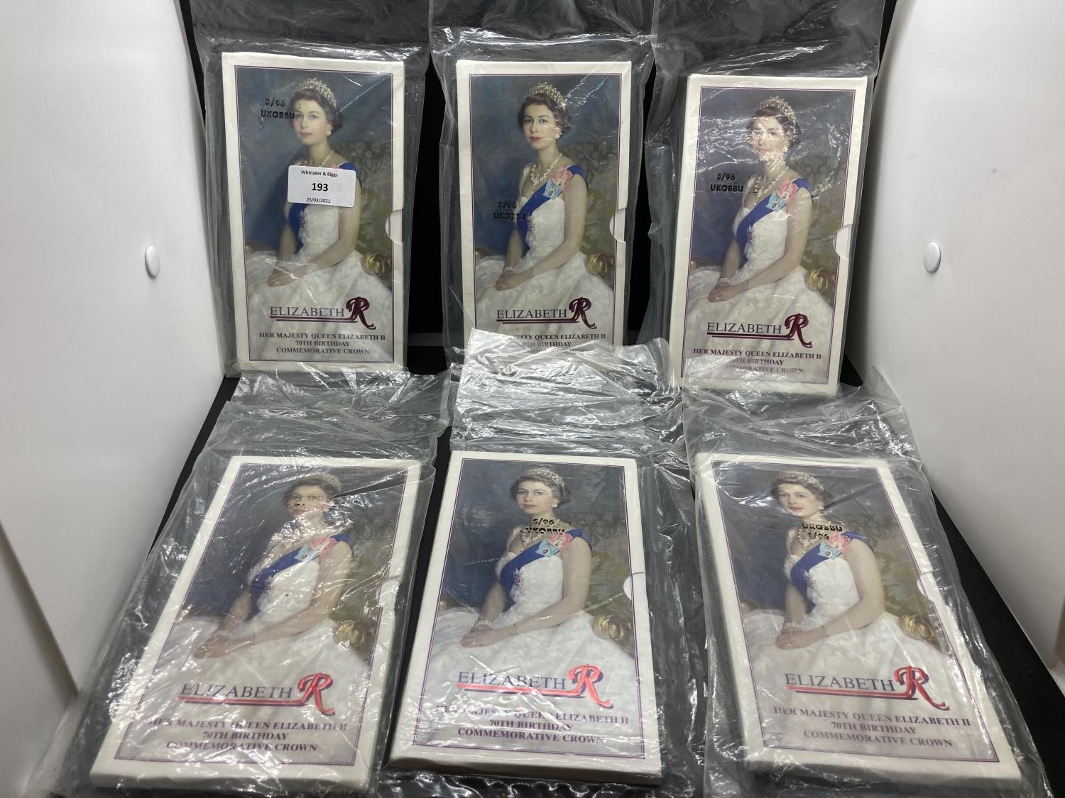Six Royal Mint issue envelopes containing 1996 Elizabeth II 70th Birthday Commemorative crown coins