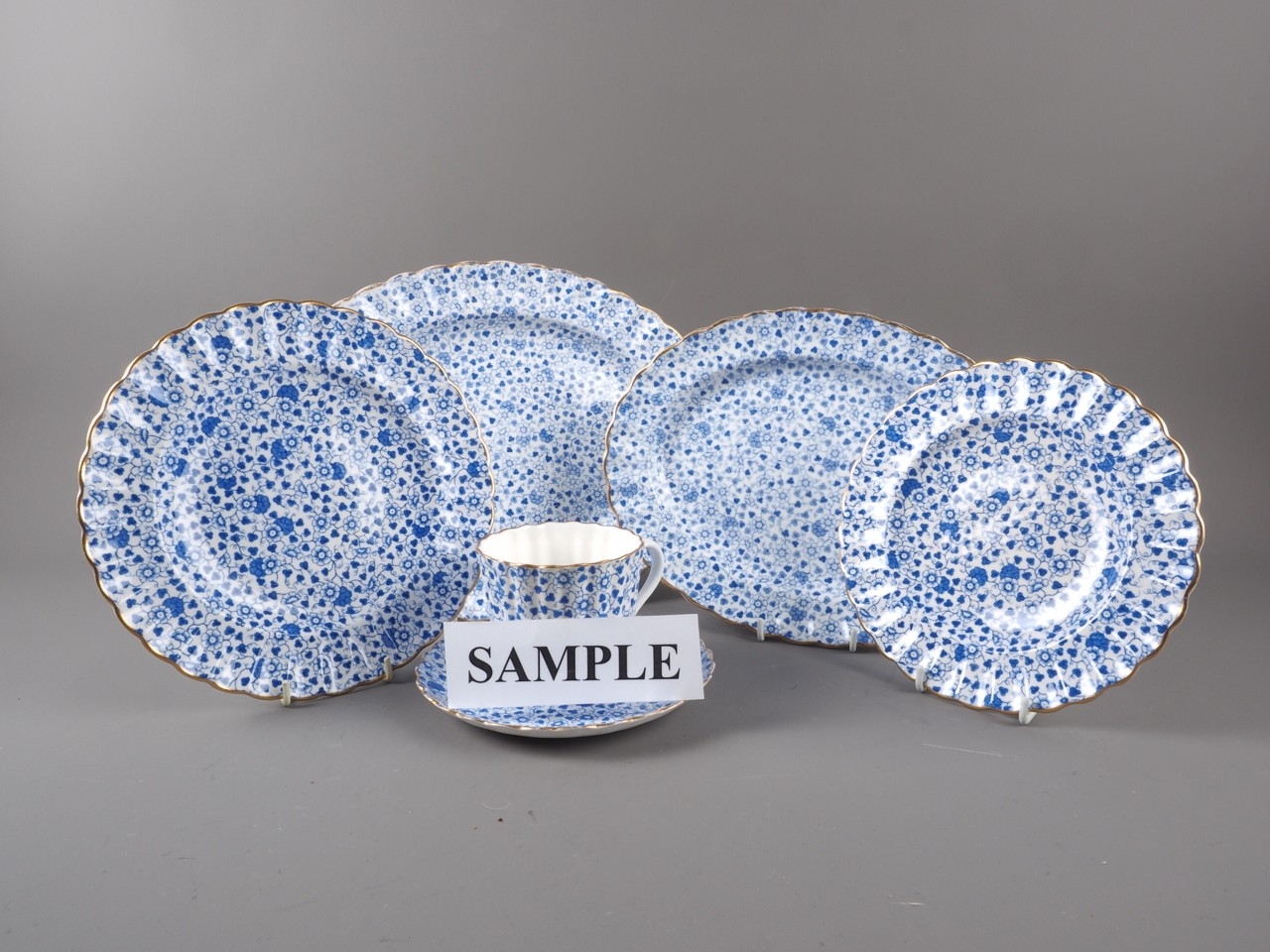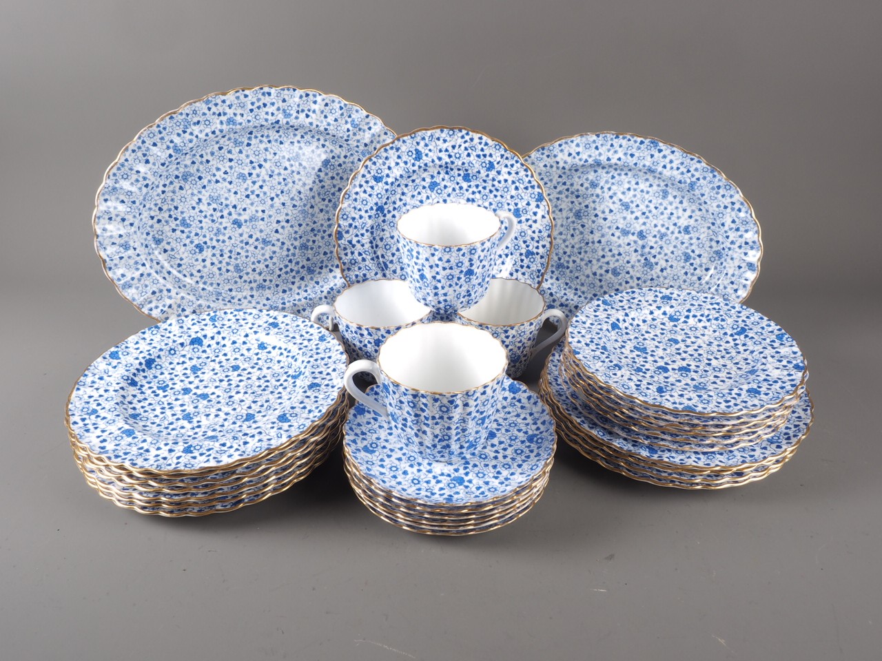 A Copeland Spode blue and white part combination service with floral decoration and gilt borders (some damages)