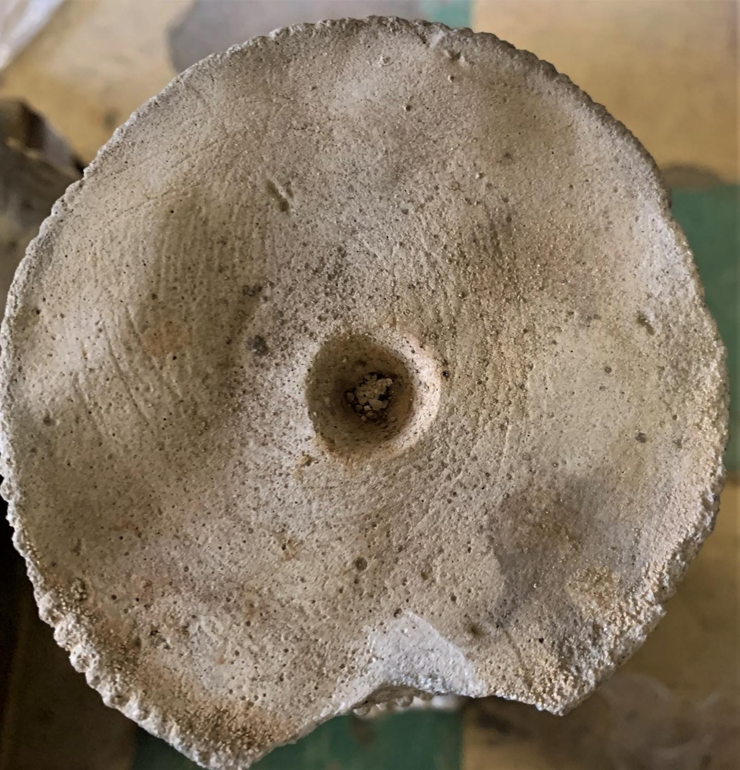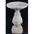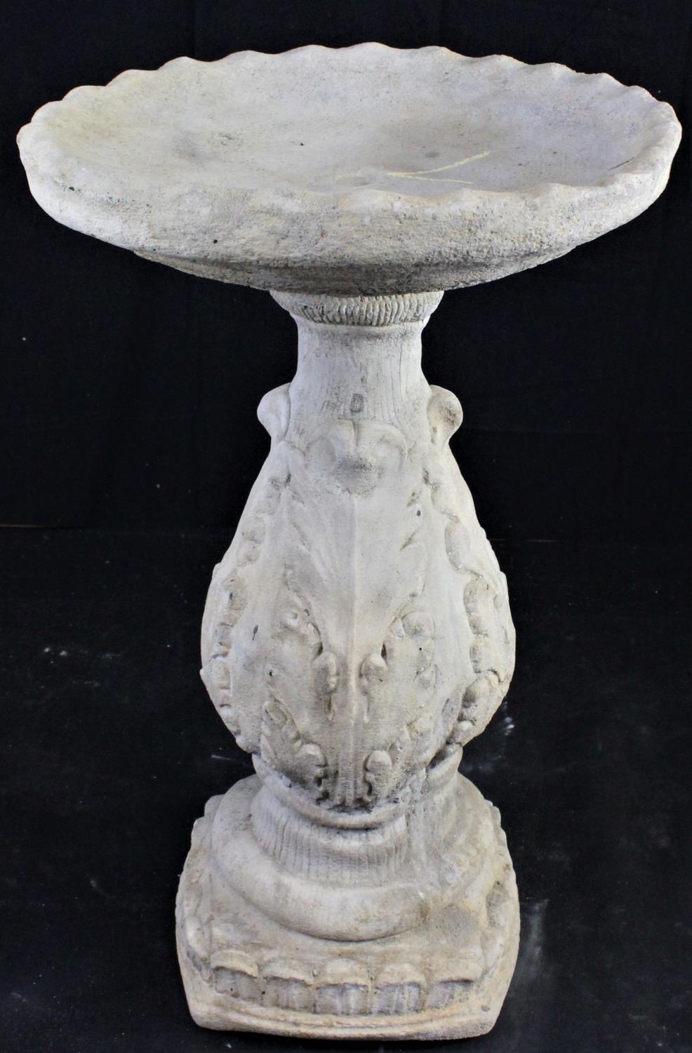 STONEWORK VINEYARD BIRD BATH ADORNED VINE LEAVES - DAMAGE TO TOP OF BASE (23" HIGH, TOP HAS DIAMETER OF 14")
