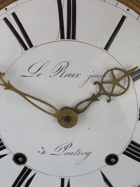 An antique French morbier clock dial and movement. The enamelled dial Inscribed ‘Le Roux jeune a Pontivy.’ 43.5 cm height.