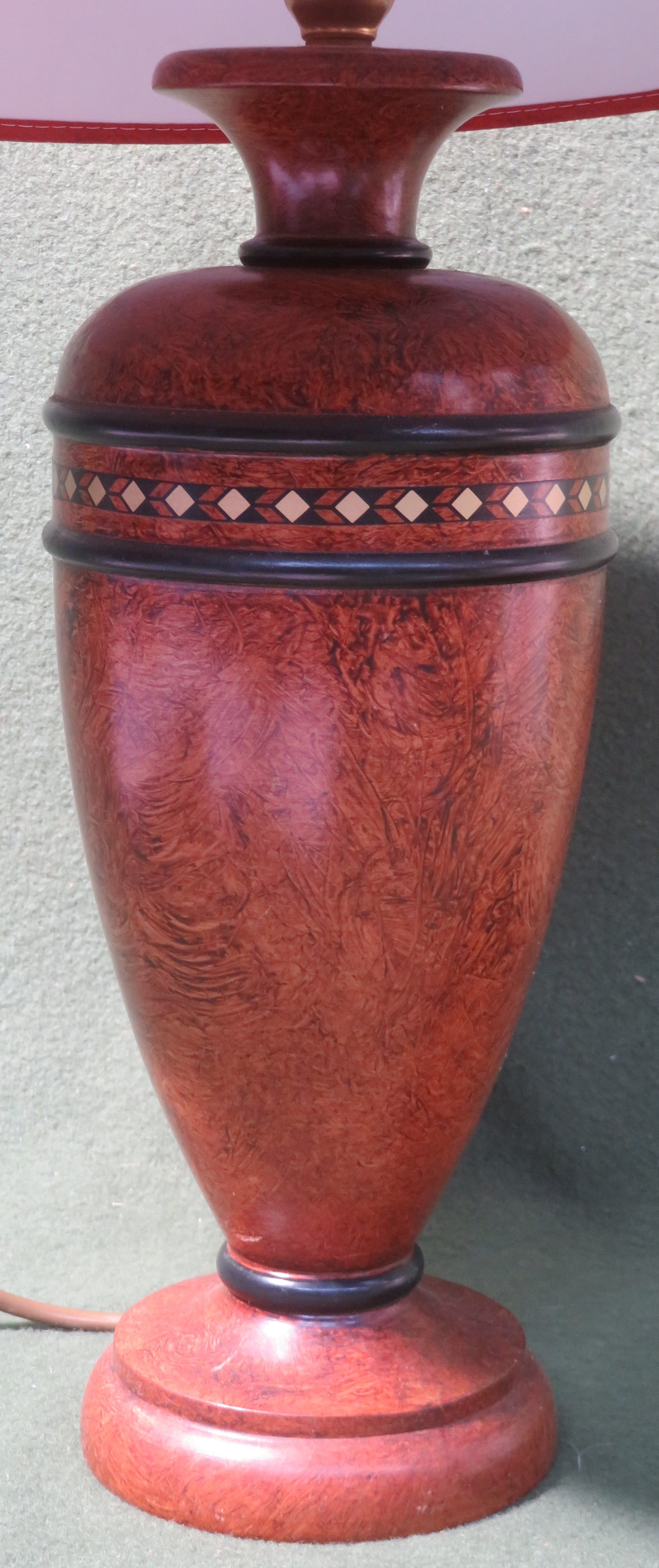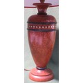 Pretty 20th century brass inlaid treen table lamp, with shade. Lamp base Approx. 32cms High