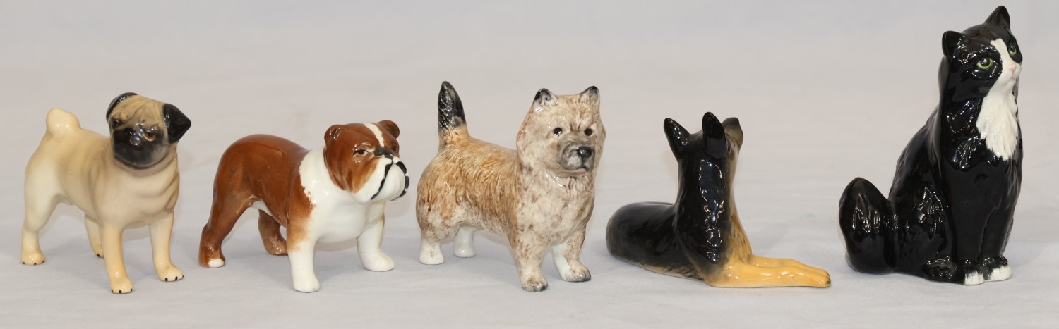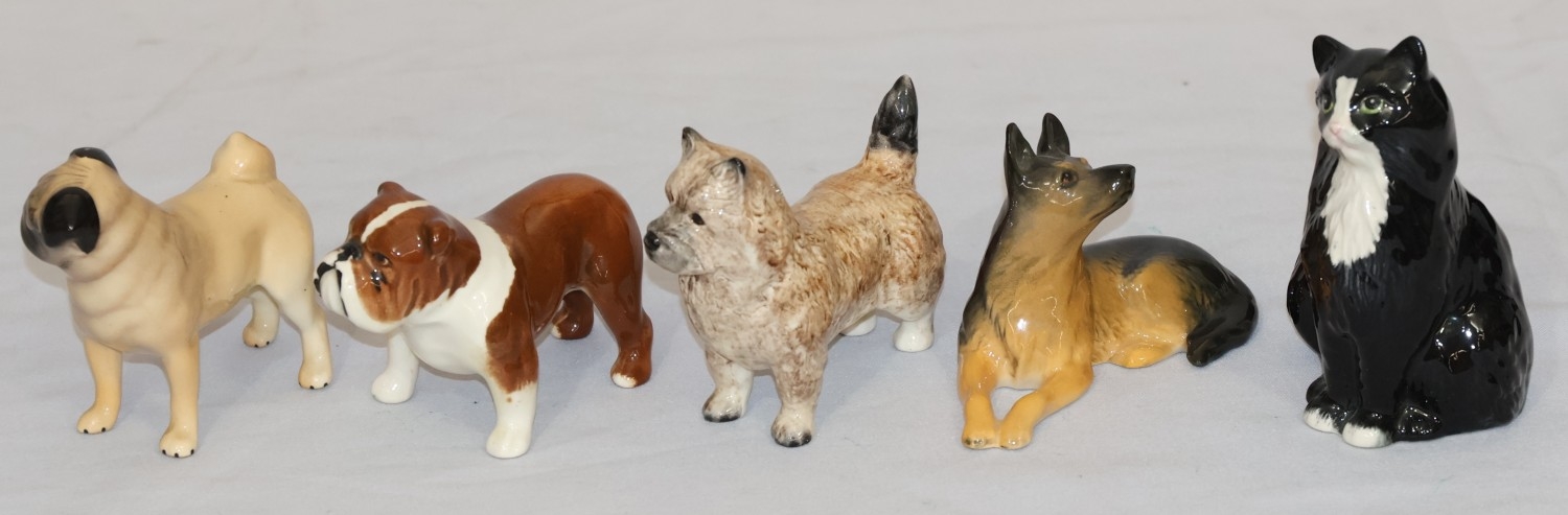4 various Beswick figures of dogs and 1 Beswick figure of a cat (5)