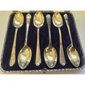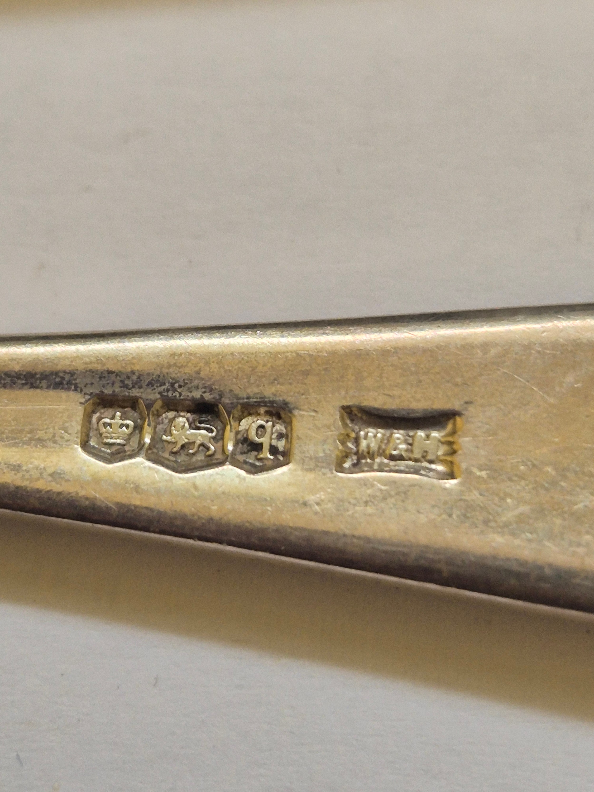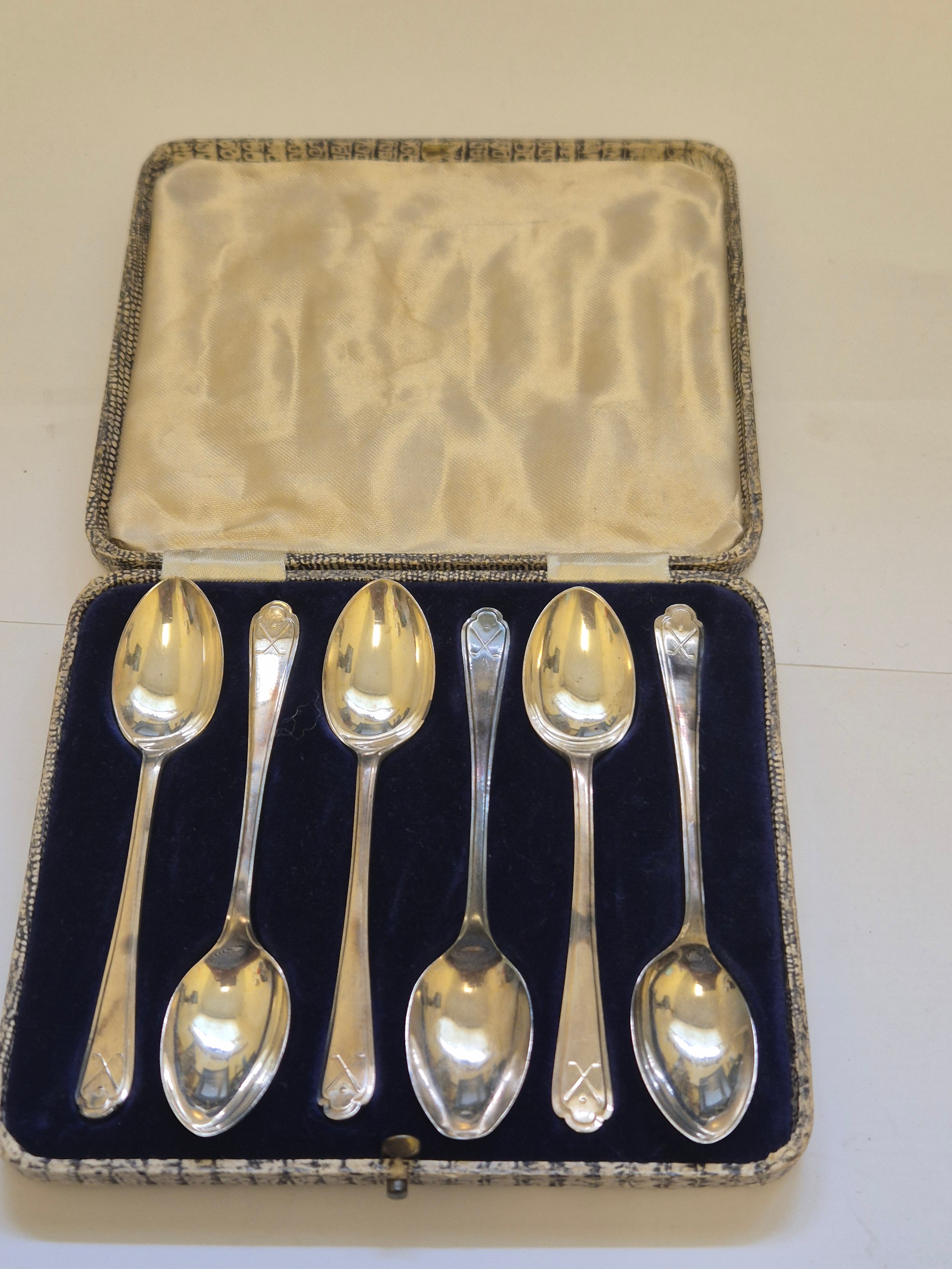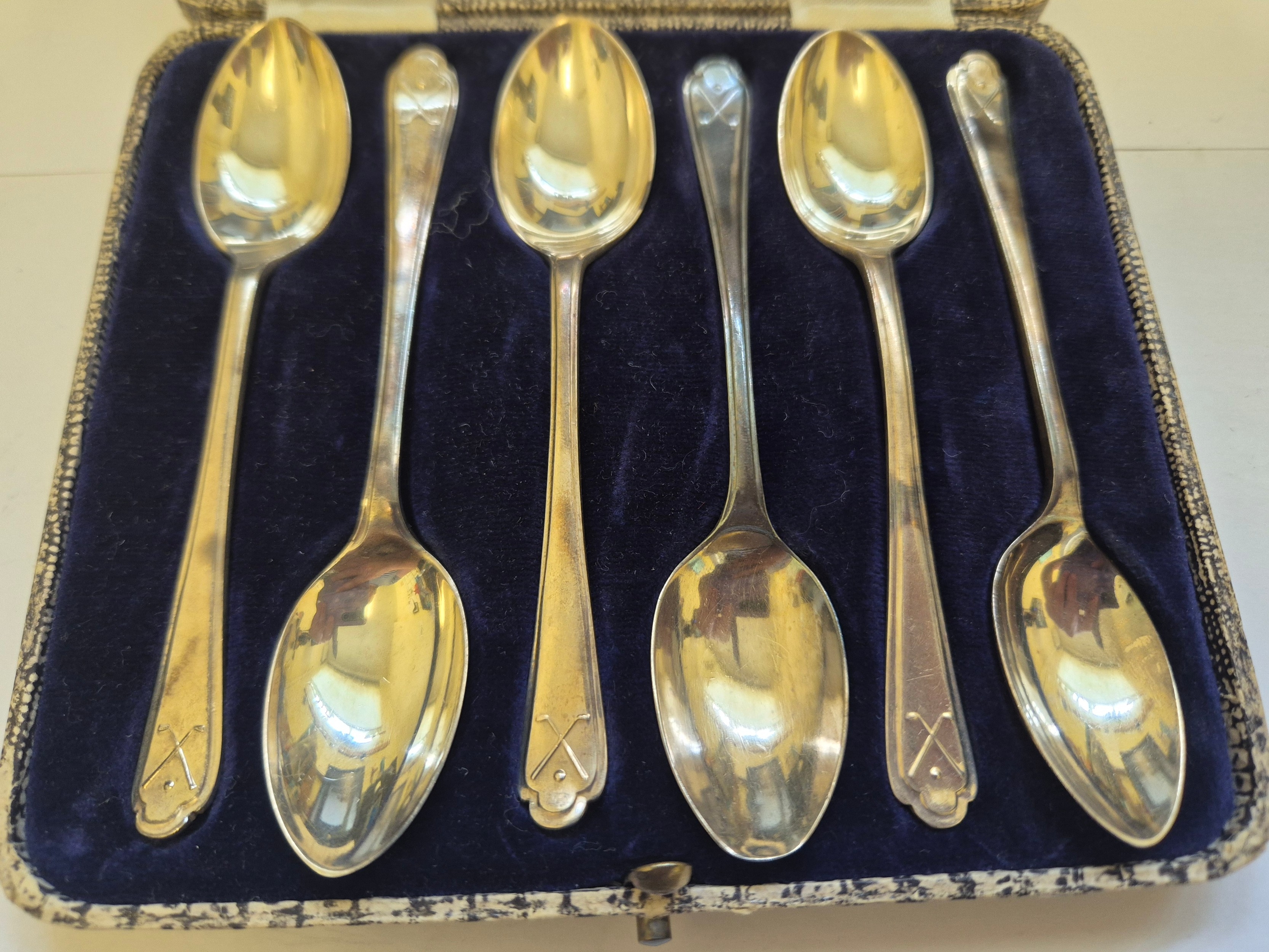 Set of 6 sterling silver cased coffee spoons with crossed golf clubs & ball decoration to handles. Sheffield 1933, maker Walker & Hall - 81 grams