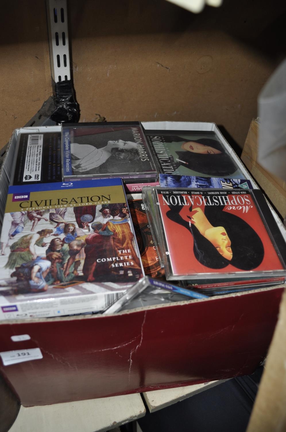 BOX OF HARDBACK BOOKS AND CDS