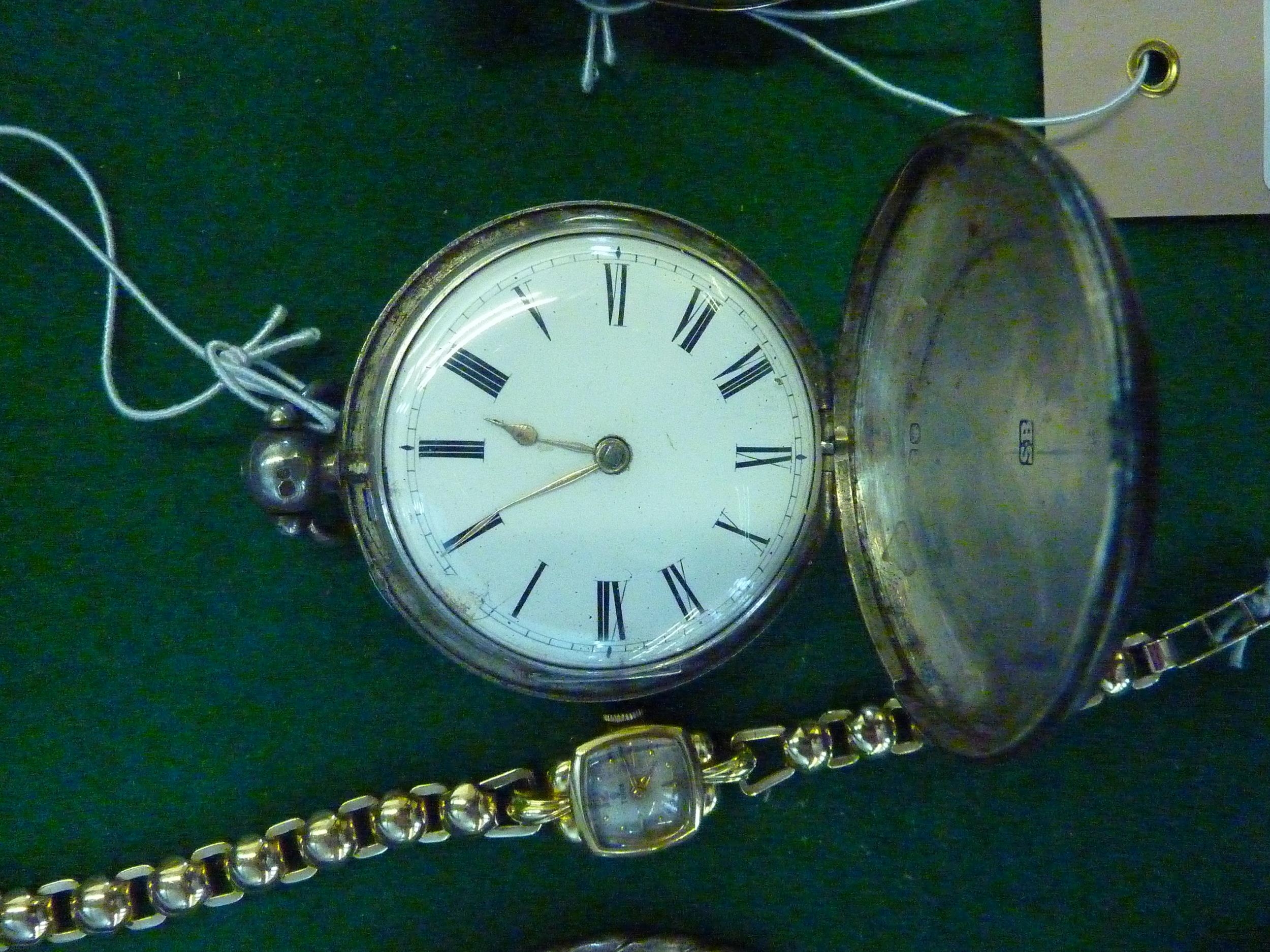 A silver cased pocket watch with cover to the dial