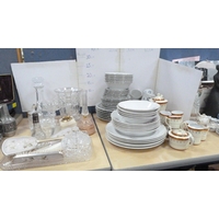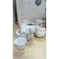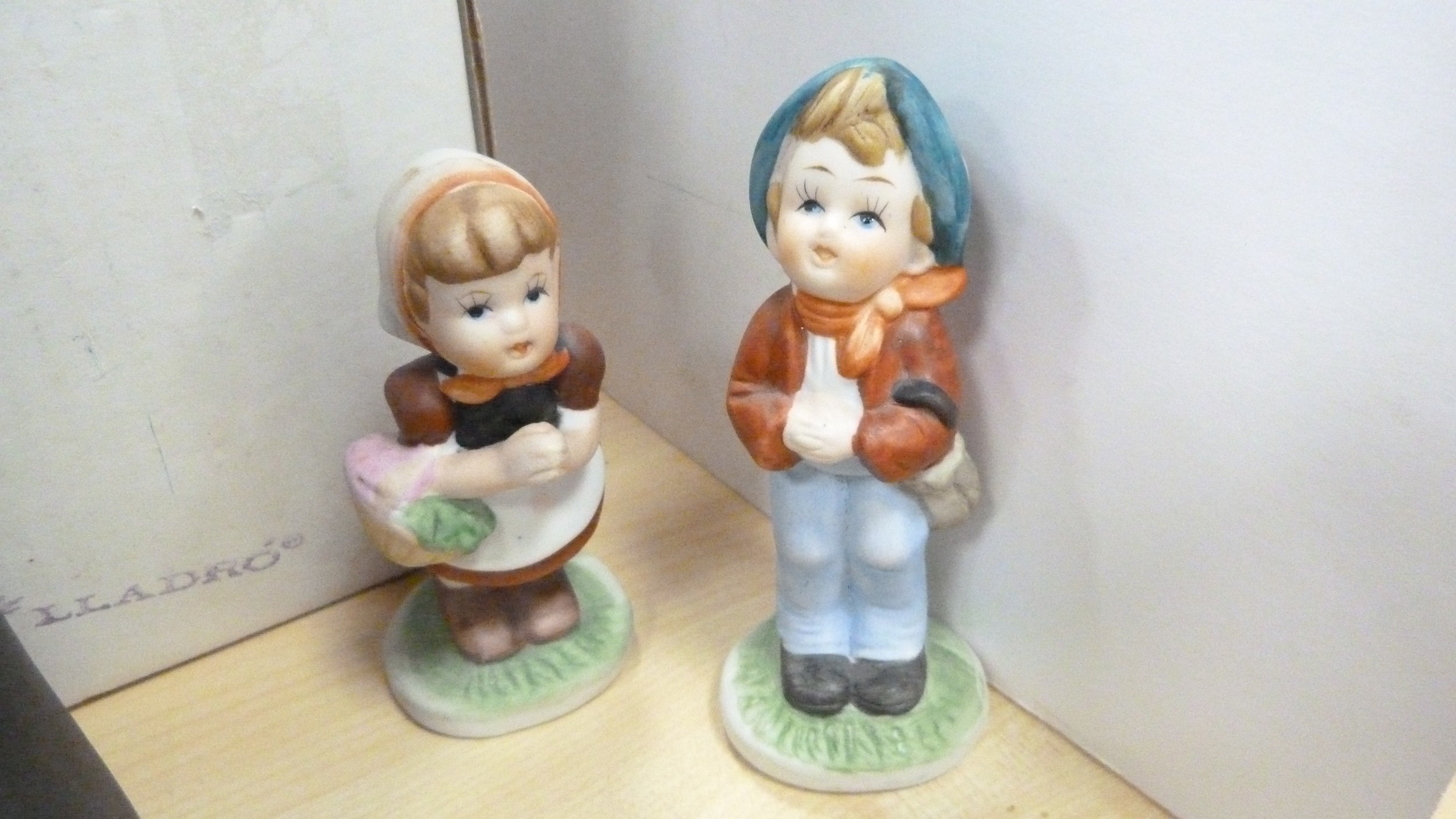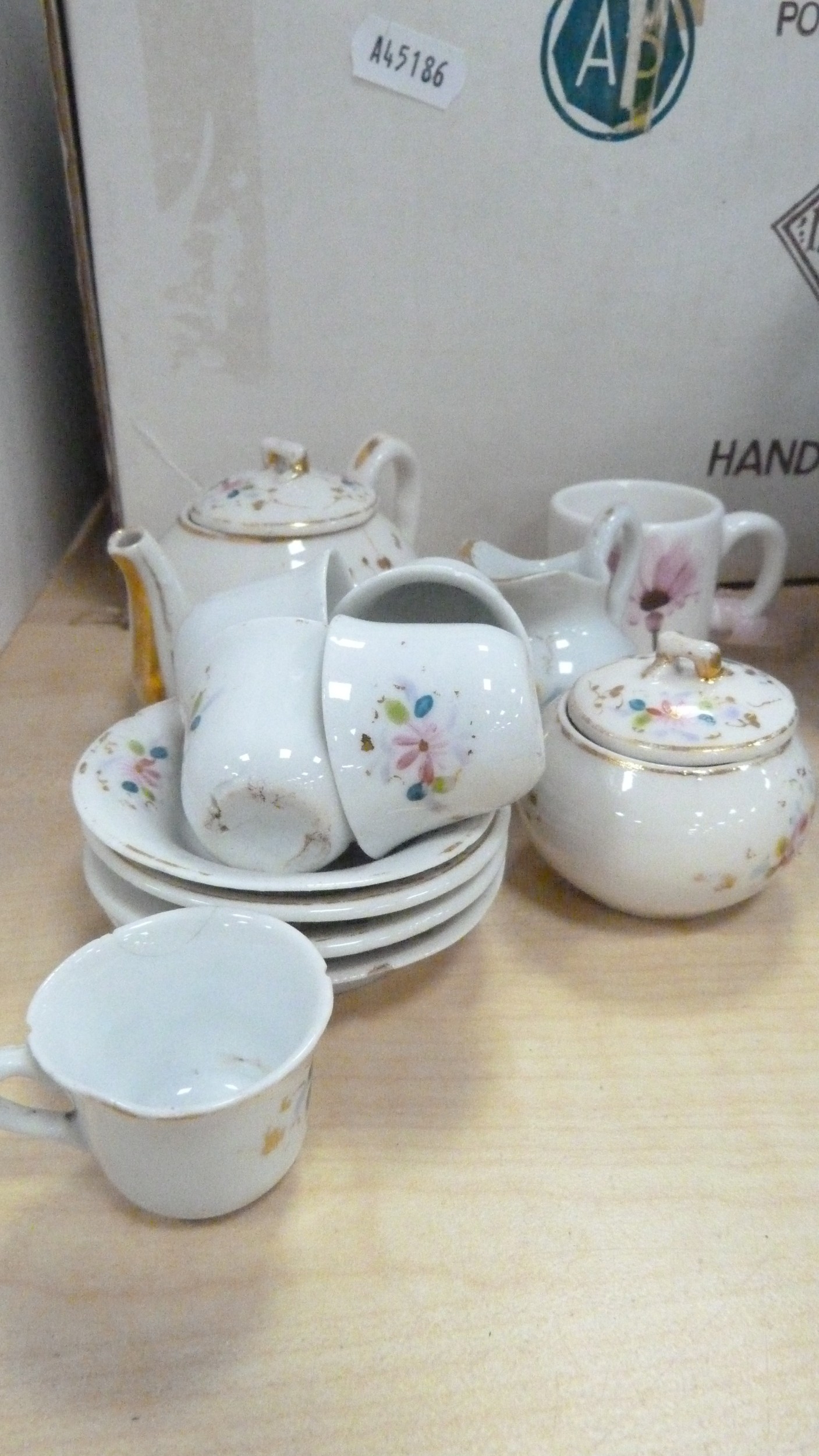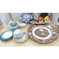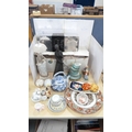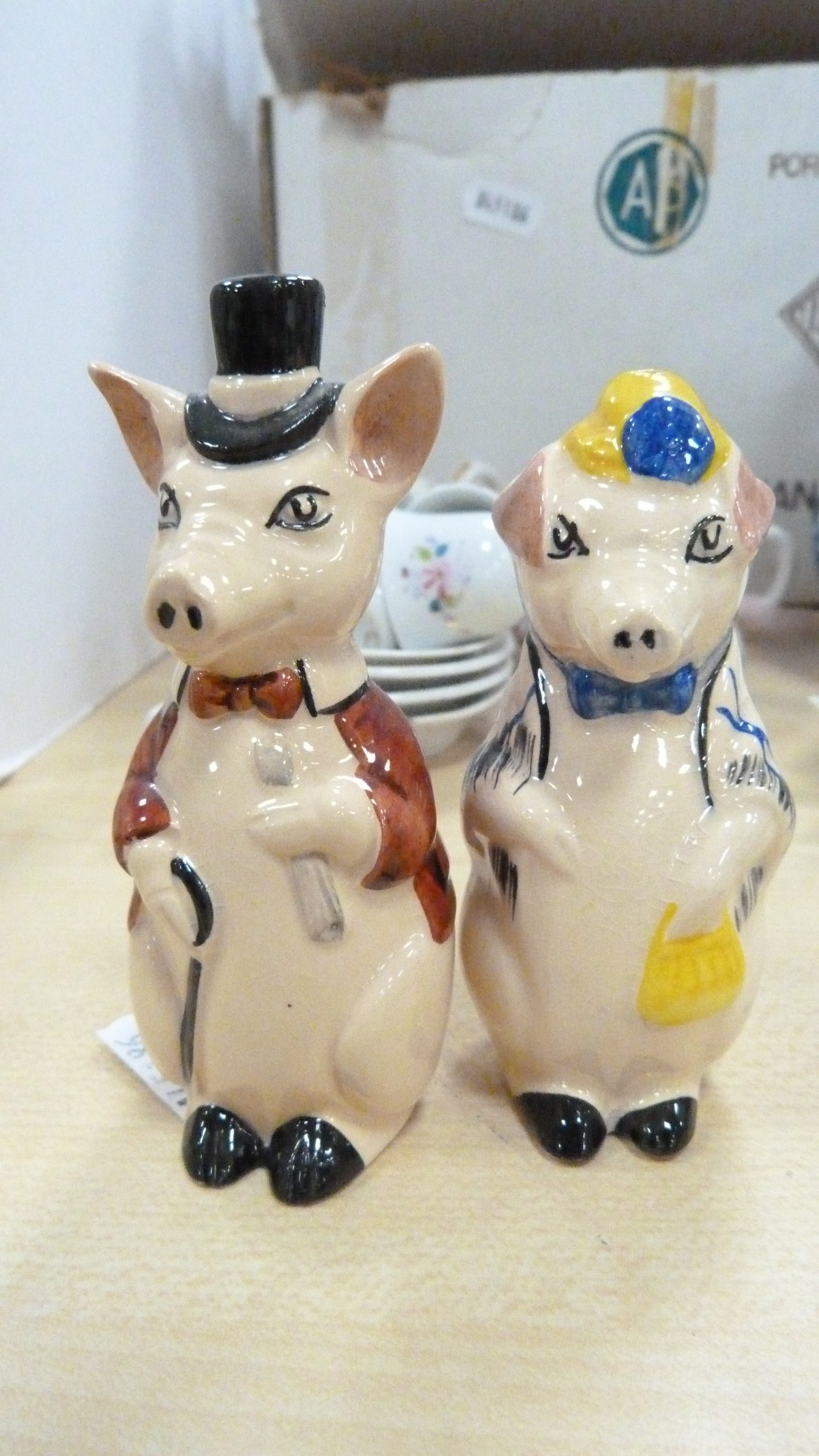 Royal Doulton boxed Images figure, Nao figure of a lady with parasol, boxed, 20th century Chinese blue and white teapot, miniature porcelain, cabinet cups and saucers, figures, plate, pair of Wade pig condiments etc.