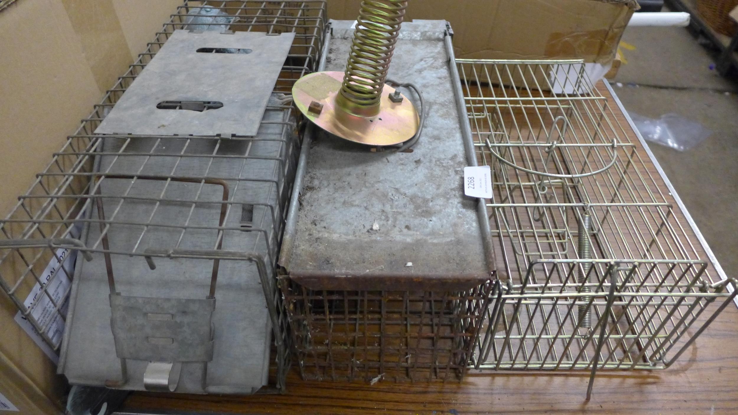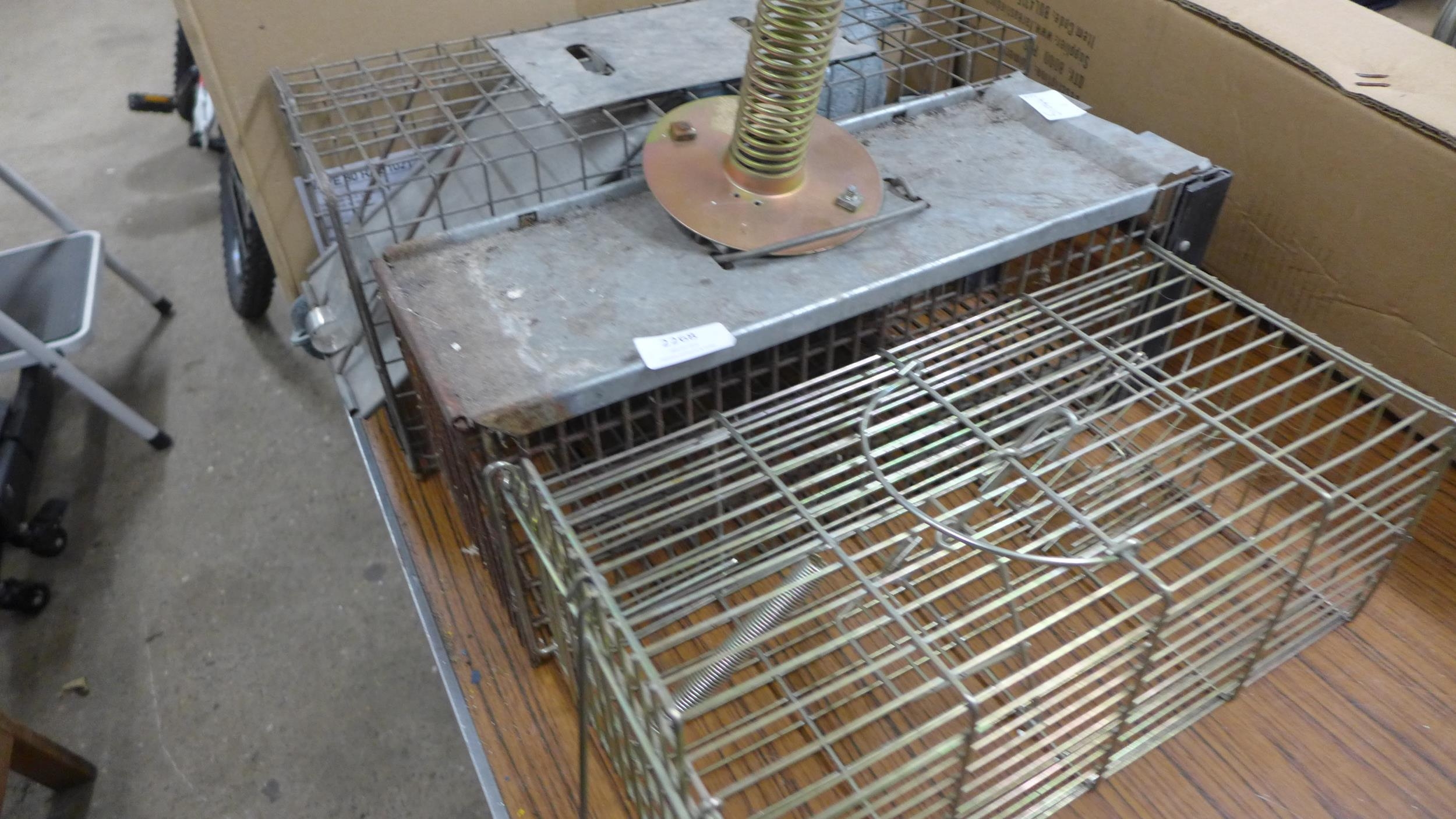 3 18x10" vermin traps & 2 decoy pigeons plus chicken feeder