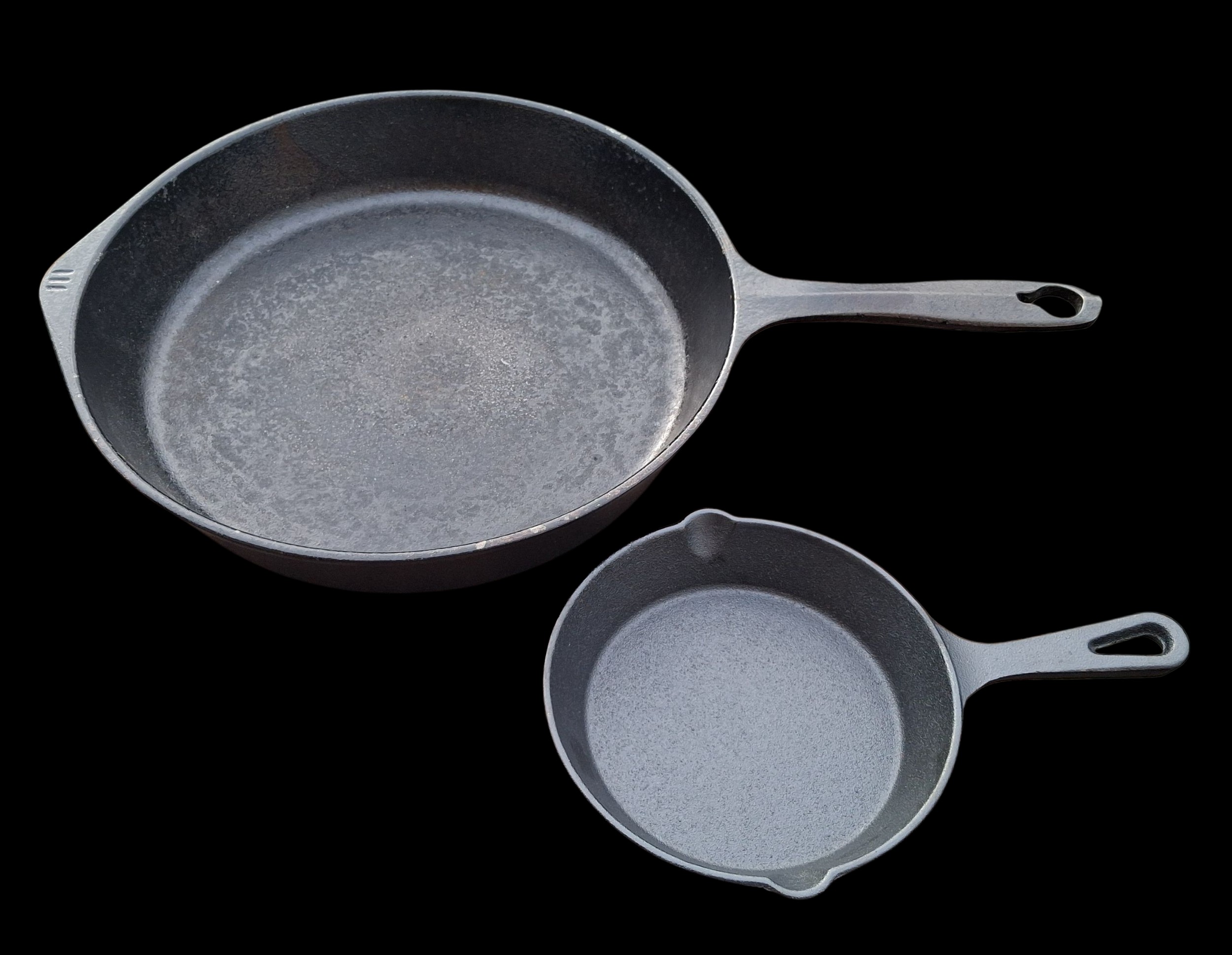 2 CAST IRON FRYING PANS