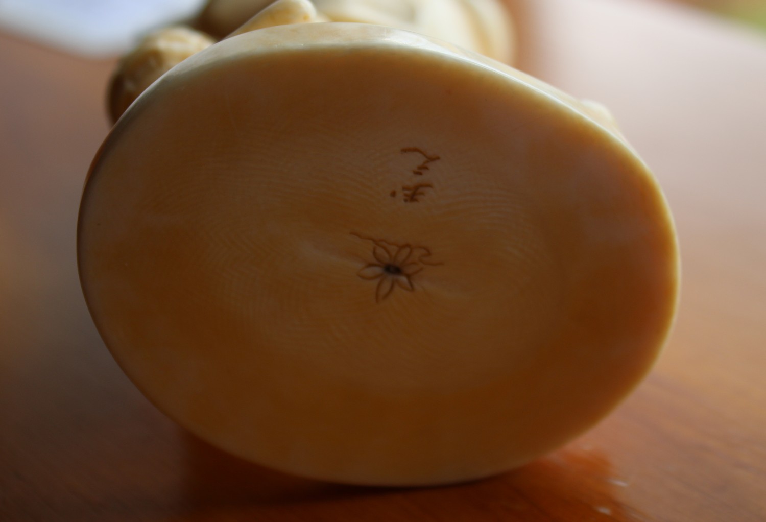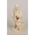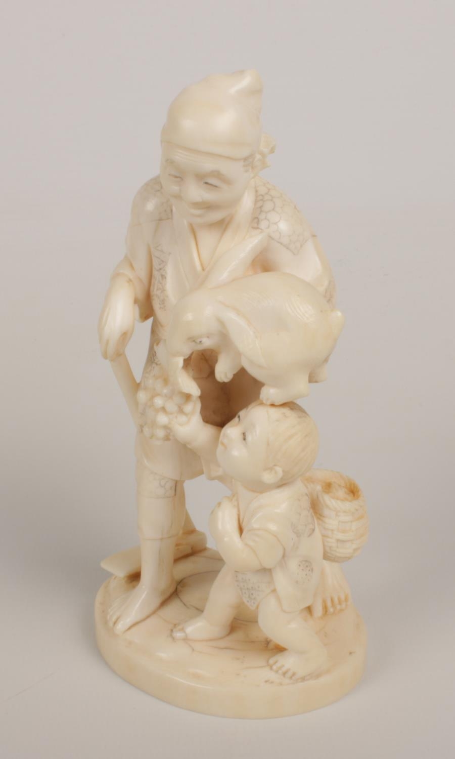 A Japanese Meiji period ivory okimono, boy, rabbit and an elder man, signed to base. (12cm tall)