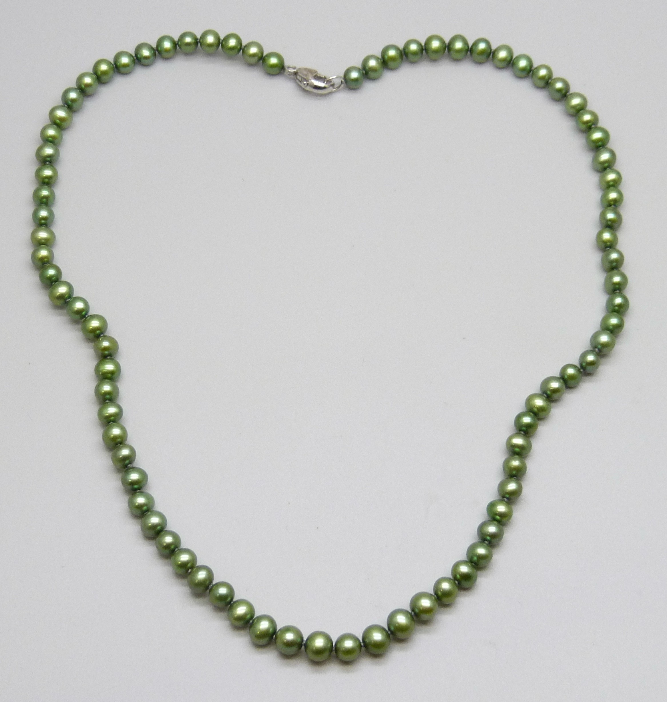 A Honora green pearl necklace with a silver clasp, 19g, 46cm