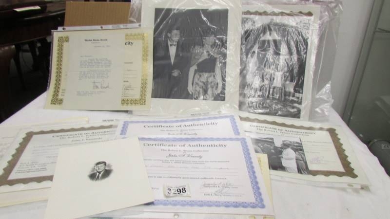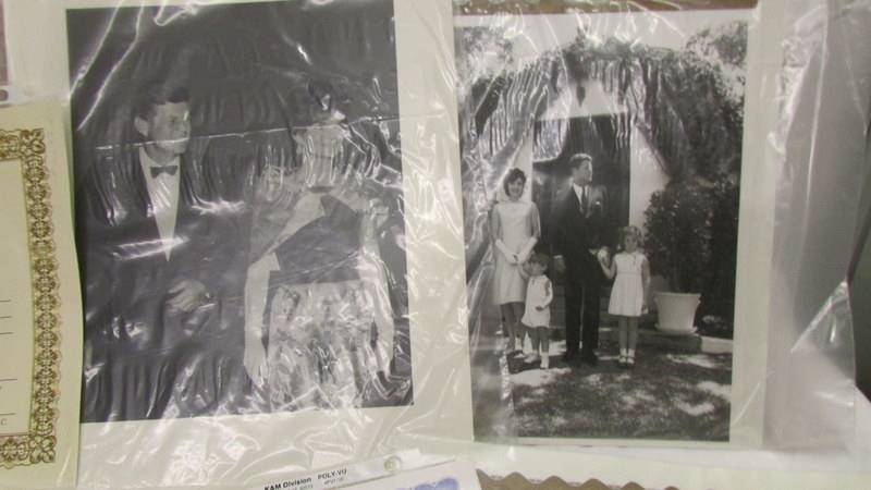 Various photographs and ephemera relating to JFK from the Robert L White collection.
